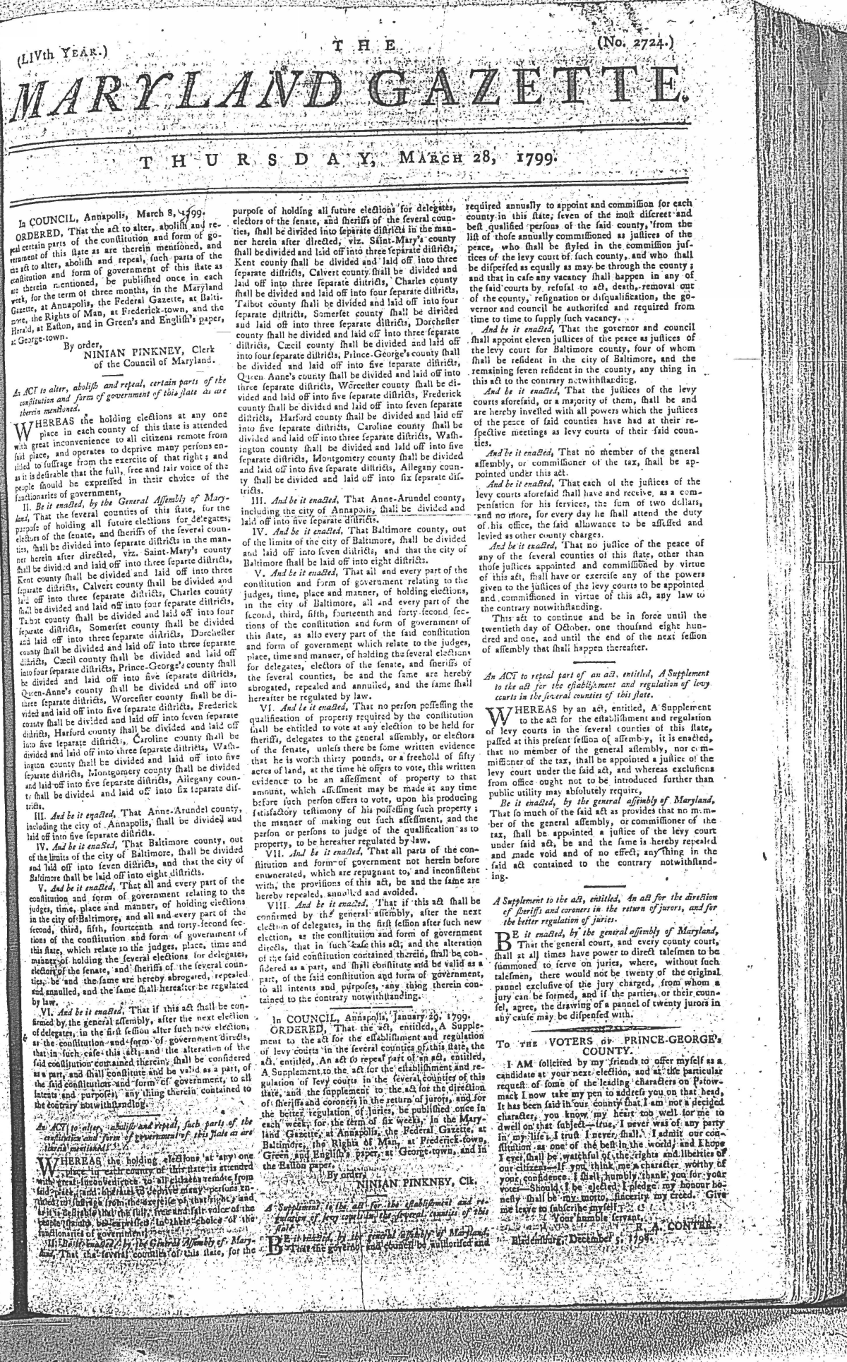 Maryland Gazette Collection MSA SC 2731 January 1, 1795 - December 29, 1803 M 1285 A Publication of the Archives of Maryland Online Image No: 922 Enlarge and print image (3M) |