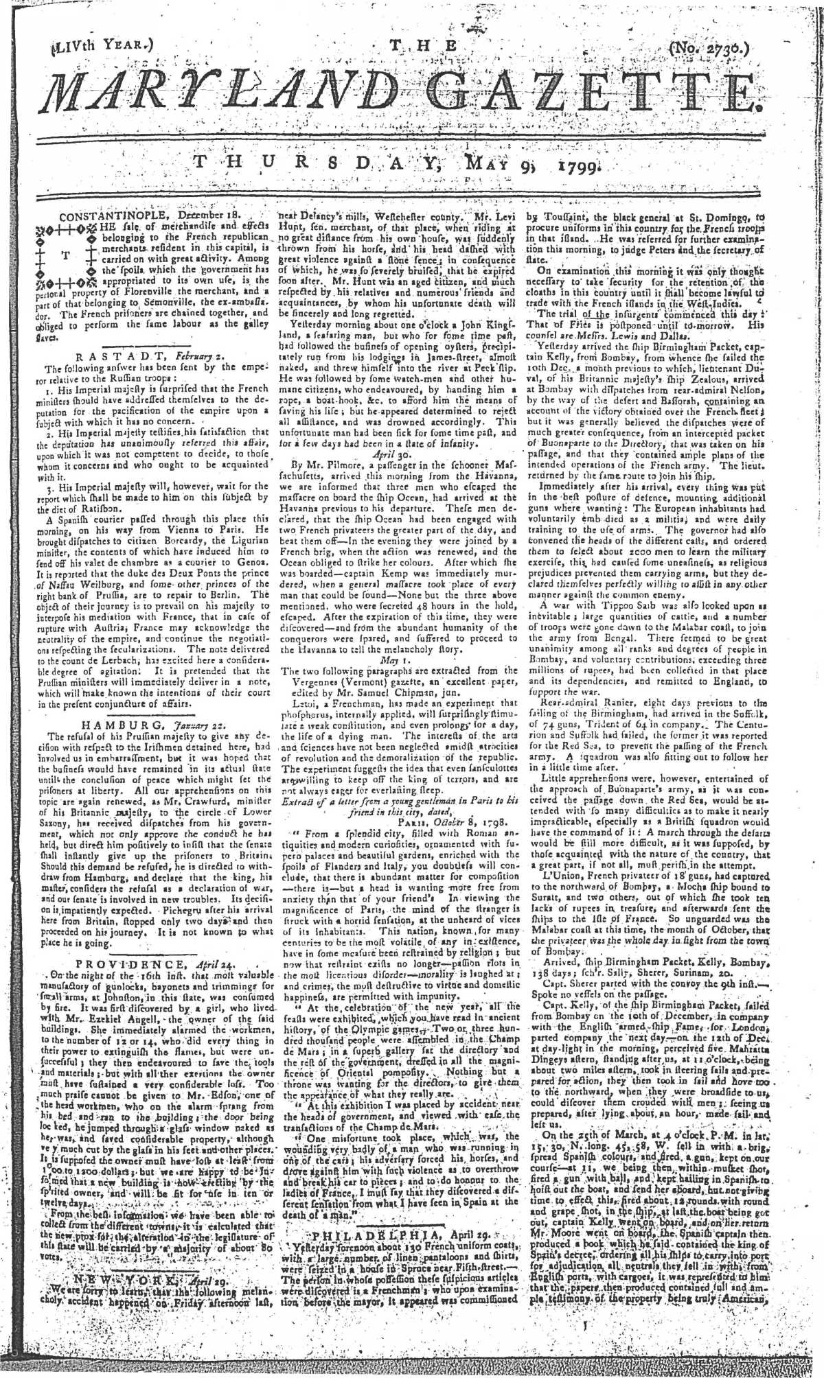 Maryland Gazette Collection MSA SC 2731 January 1, 1795 - December 29, 1803 M 1285 A Publication of the Archives of Maryland Online Image No: 948 Enlarge and print image (3M) |