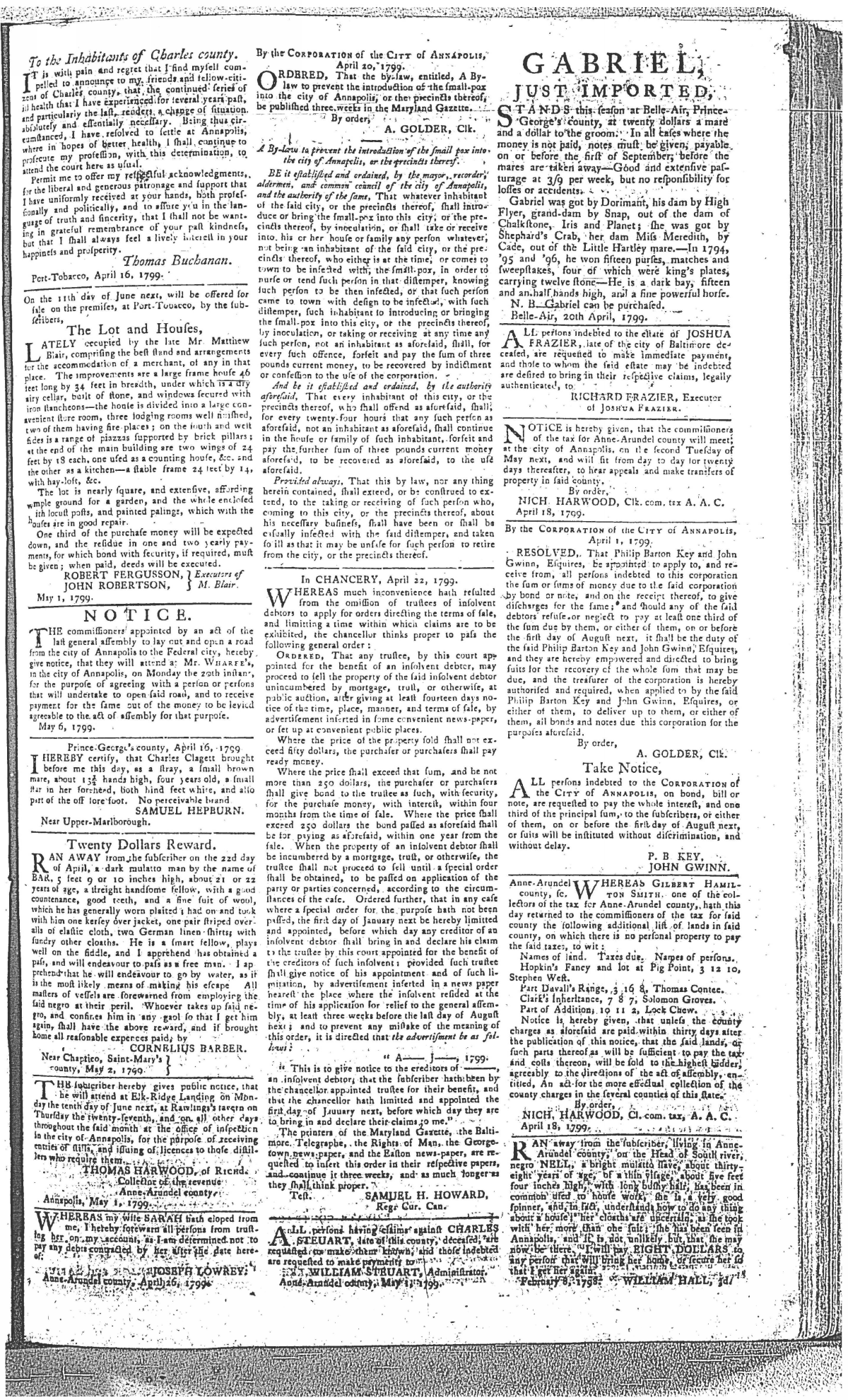 Maryland Gazette Collection MSA SC 2731 January 1, 1795 - December 29, 1803 M 1285 A Publication of the Archives of Maryland Online Image No: 954 Enlarge and print image (3M) |