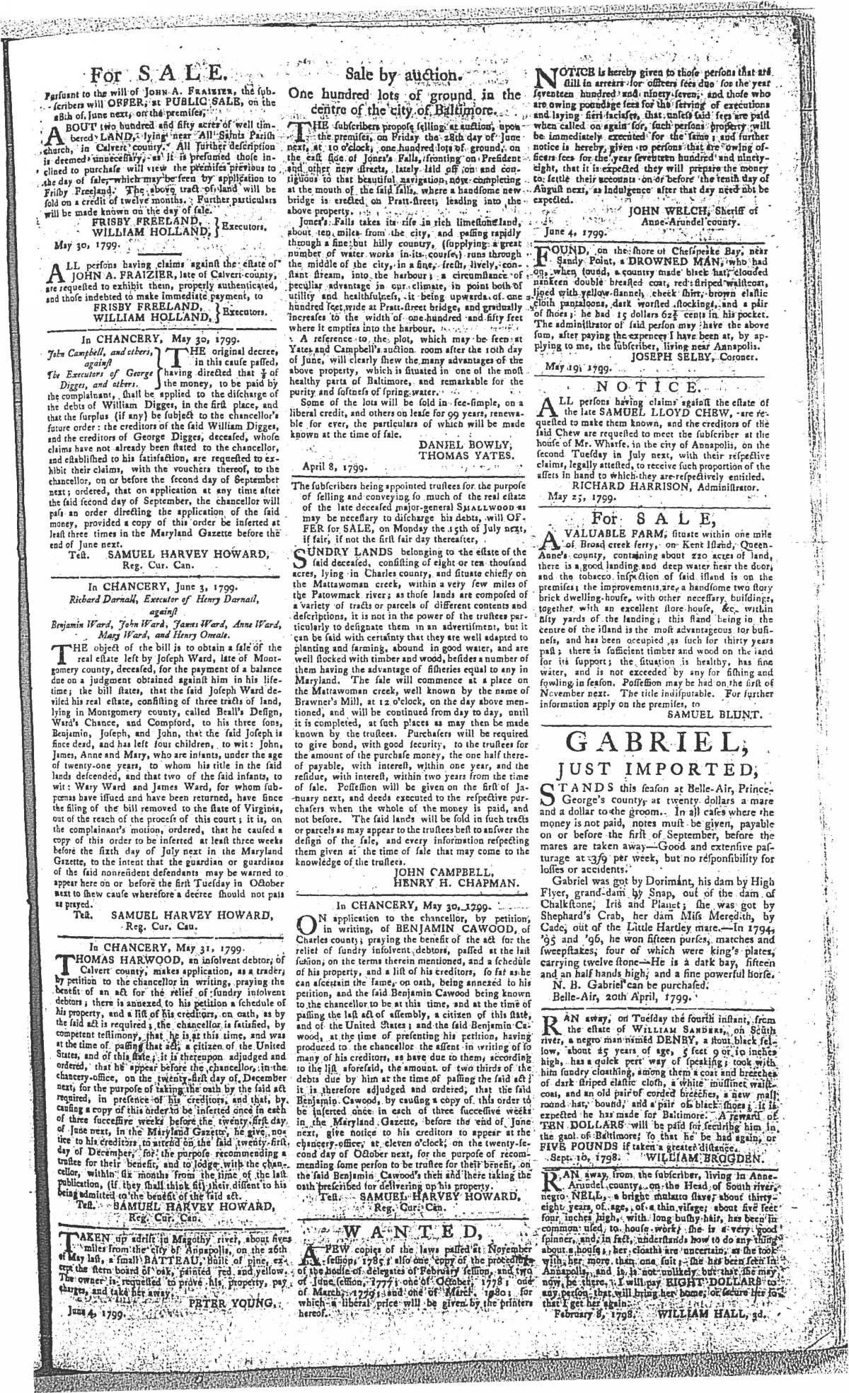 Maryland Gazette Collection MSA SC 2731 January 1, 1795 - December 29, 1803 M 1285 A Publication of the Archives of Maryland Online Image No: 970 Enlarge and print image (3M) |
