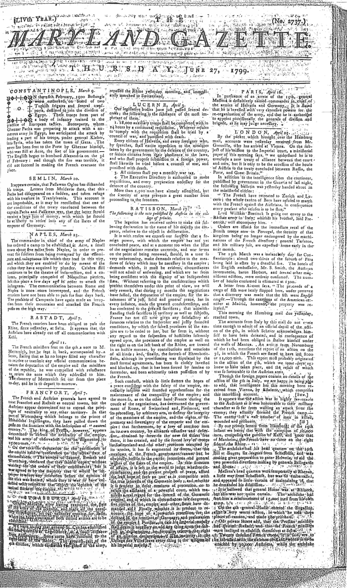 Maryland Gazette Collection MSA SC 2731 January 1, 1795 - December 29, 1803 M 1285 A Publication of the Archives of Maryland Online Image No: 976 Enlarge and print image (3M) |