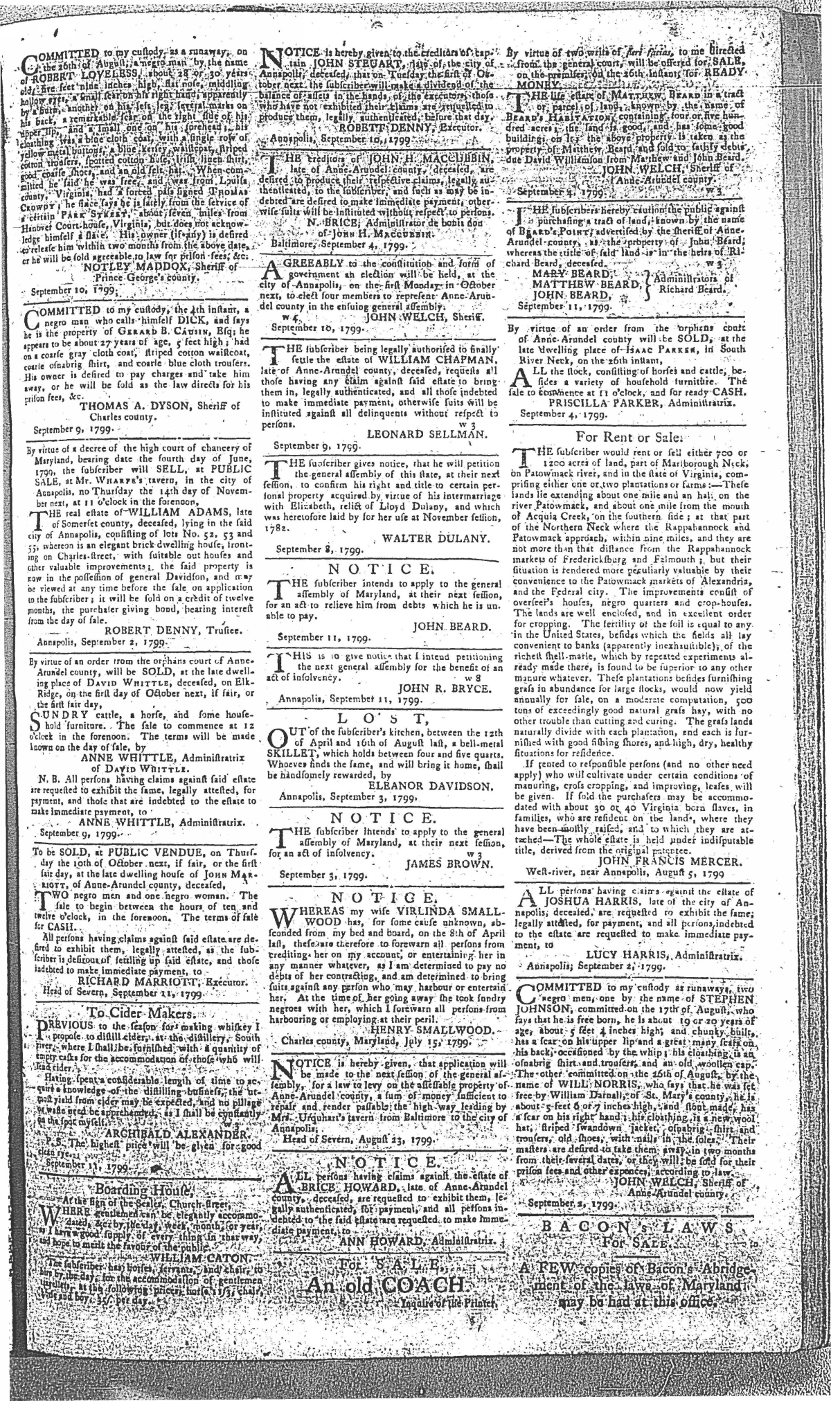 Maryland Gazette Collection MSA SC 2731 January 1, 1795 - December 29, 1803 M 1285 A Publication of the Archives of Maryland Online Image No: 1026 Enlarge and print image (4M) |