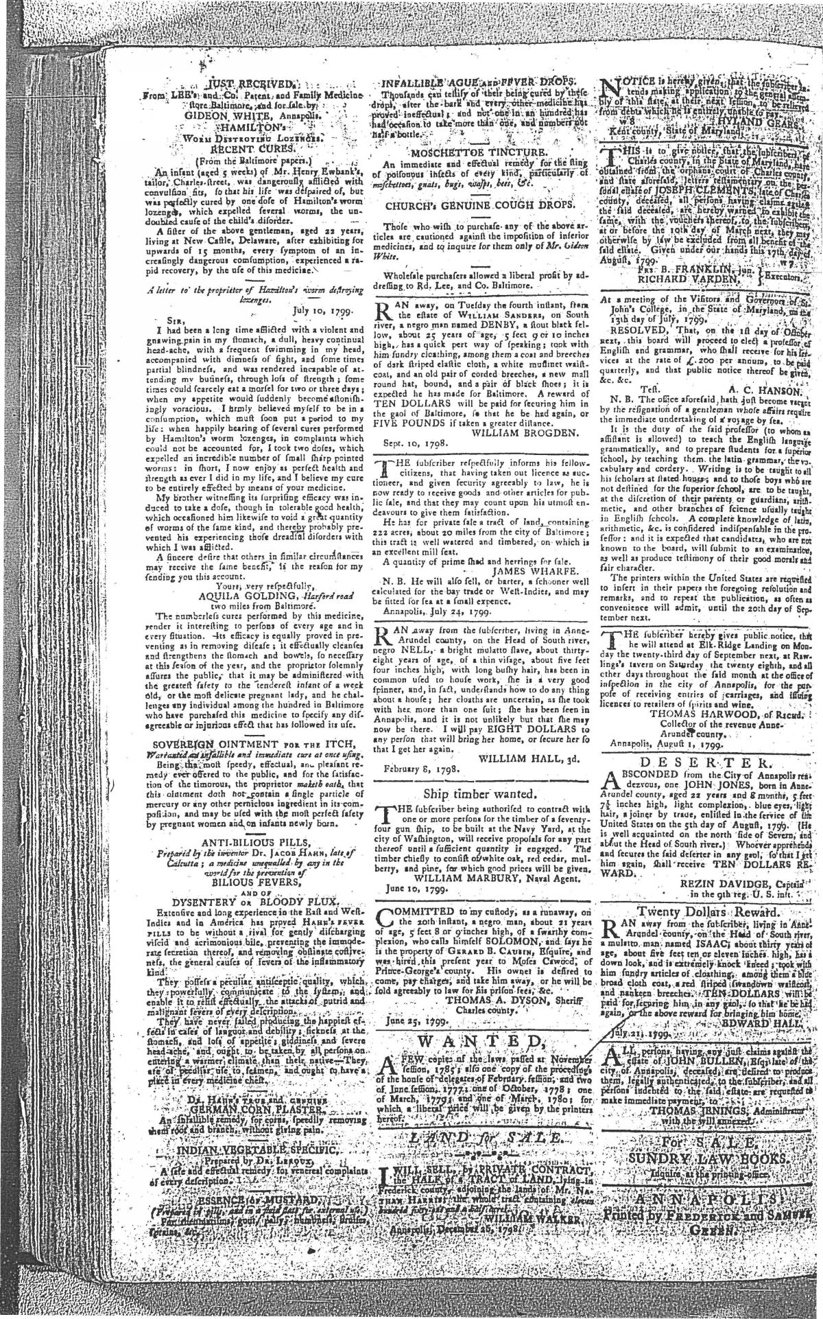 Maryland Gazette Collection MSA SC 2731 January 1, 1795 - December 29, 1803 M 1285 A Publication of the Archives of Maryland Online Image No: 1027 Enlarge and print image (4M) |