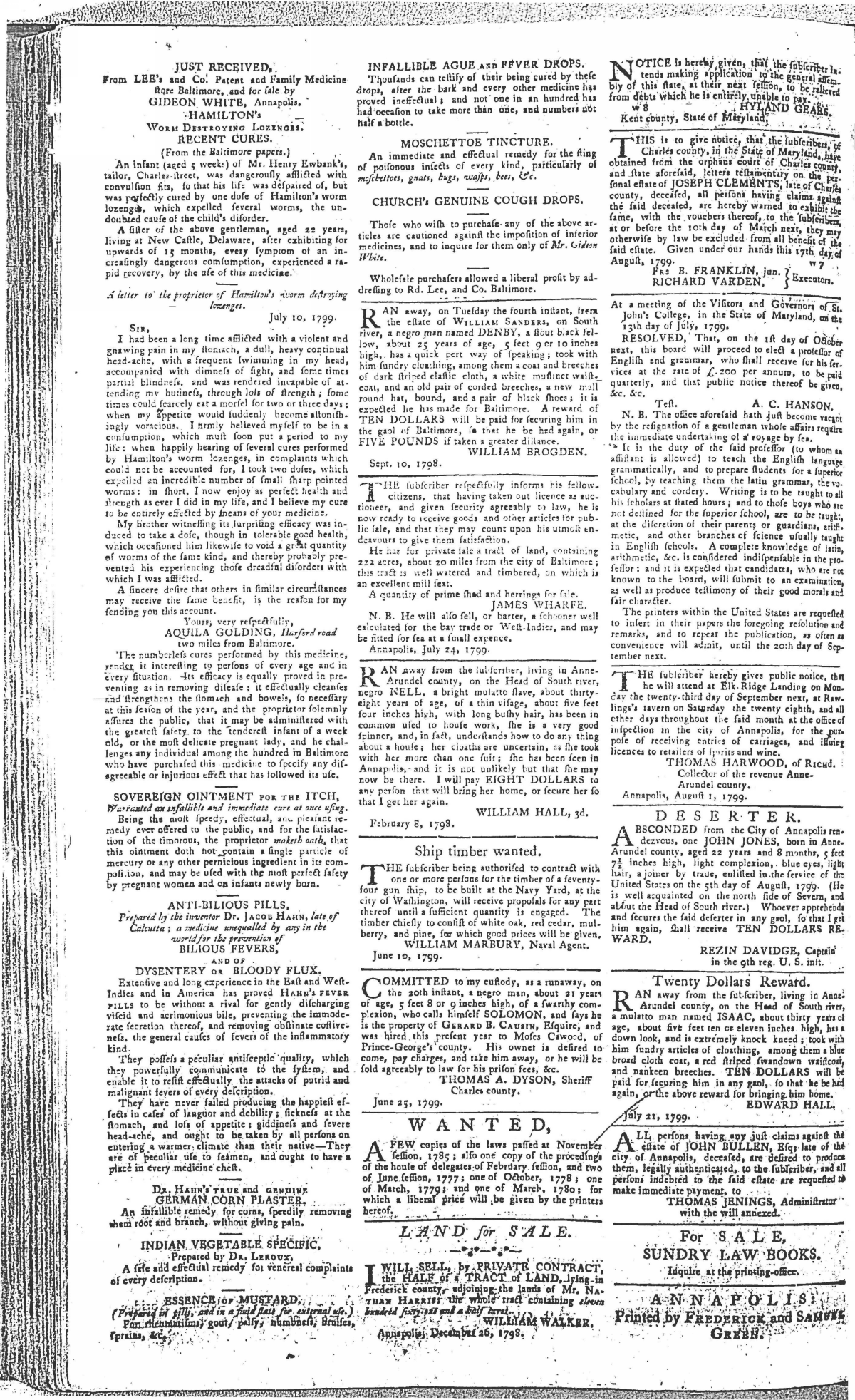 Maryland Gazette Collection MSA SC 2731 January 1, 1795 - December 29, 1803 M 1285 A Publication of the Archives of Maryland Online Image No: 1031 Enlarge and print image (3M) |