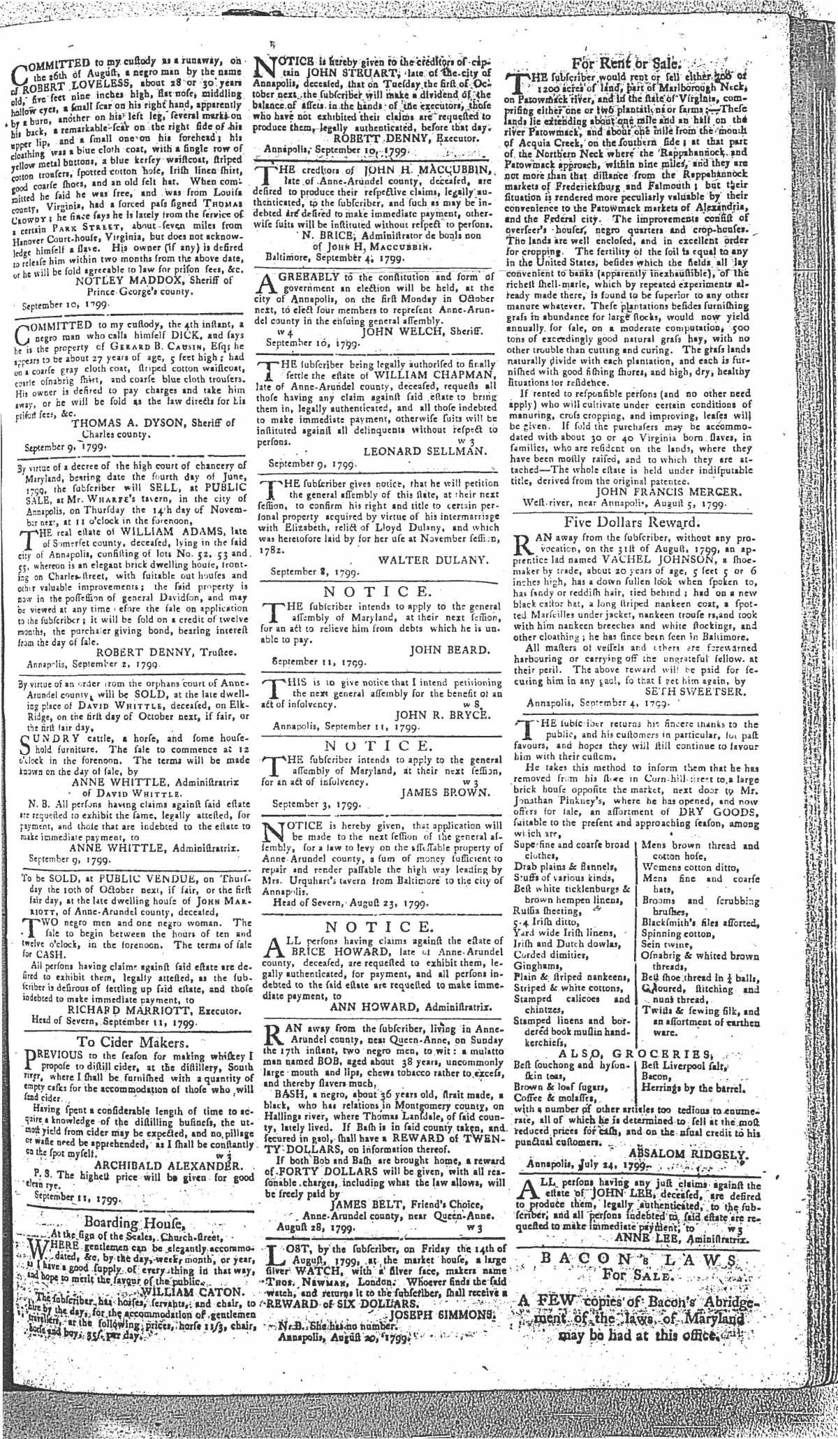 Maryland Gazette Collection MSA SC 2731 January 1, 1795 - December 29, 1803 M 1285 A Publication of the Archives of Maryland Online Image No: 1034 Enlarge and print image (3M) |