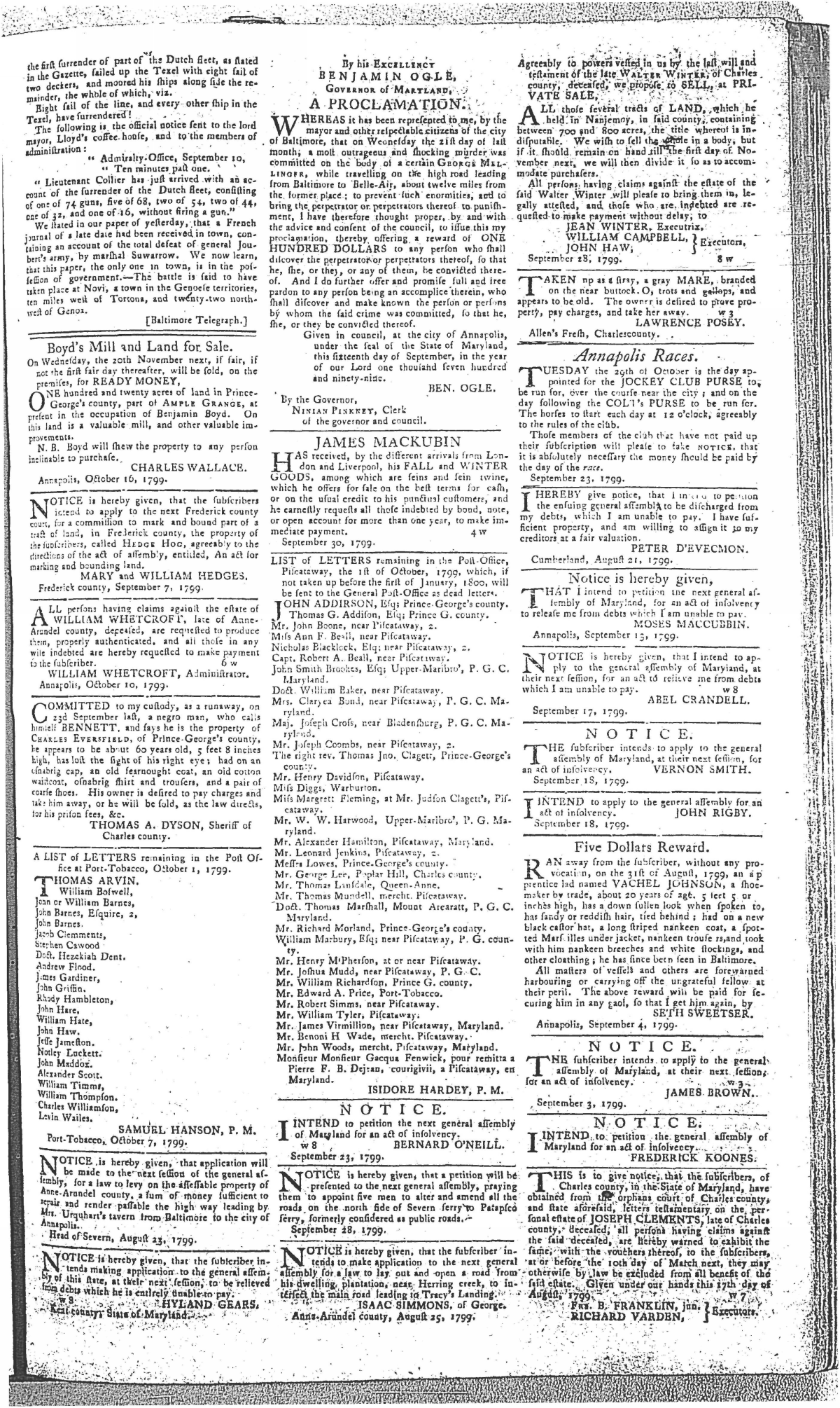 Maryland Gazette Collection MSA SC 2731 January 1, 1795 - December 29, 1803 M 1285 A Publication of the Archives of Maryland Online Image No: 1046 Enlarge and print image (2M) |