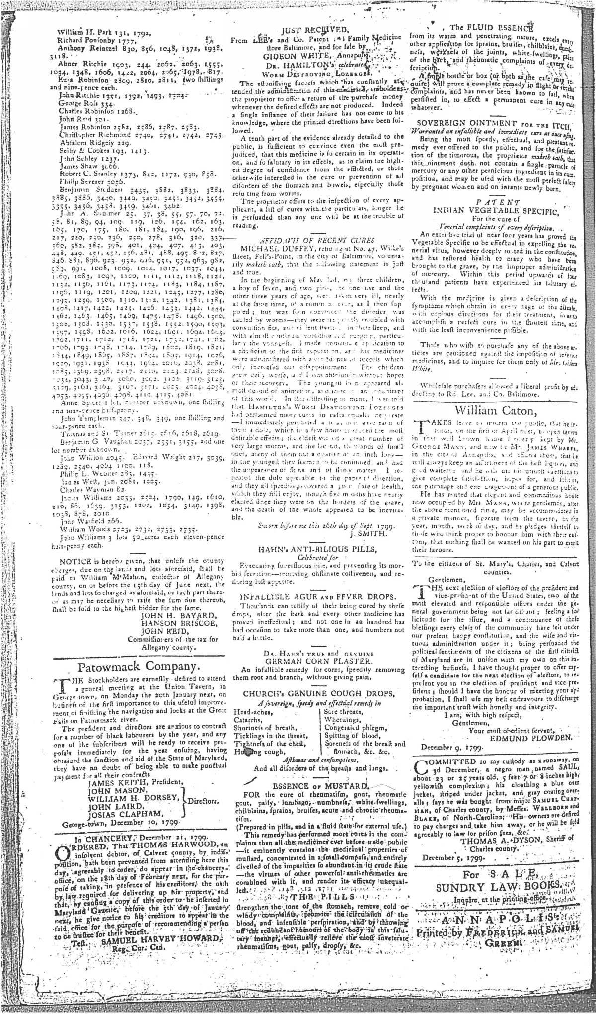 Maryland Gazette Collection MSA SC 2731 January 1, 1795 - December 29, 1803 M 1285 A Publication of the Archives of Maryland Online Image No: 1097 Enlarge and print image (2M) |