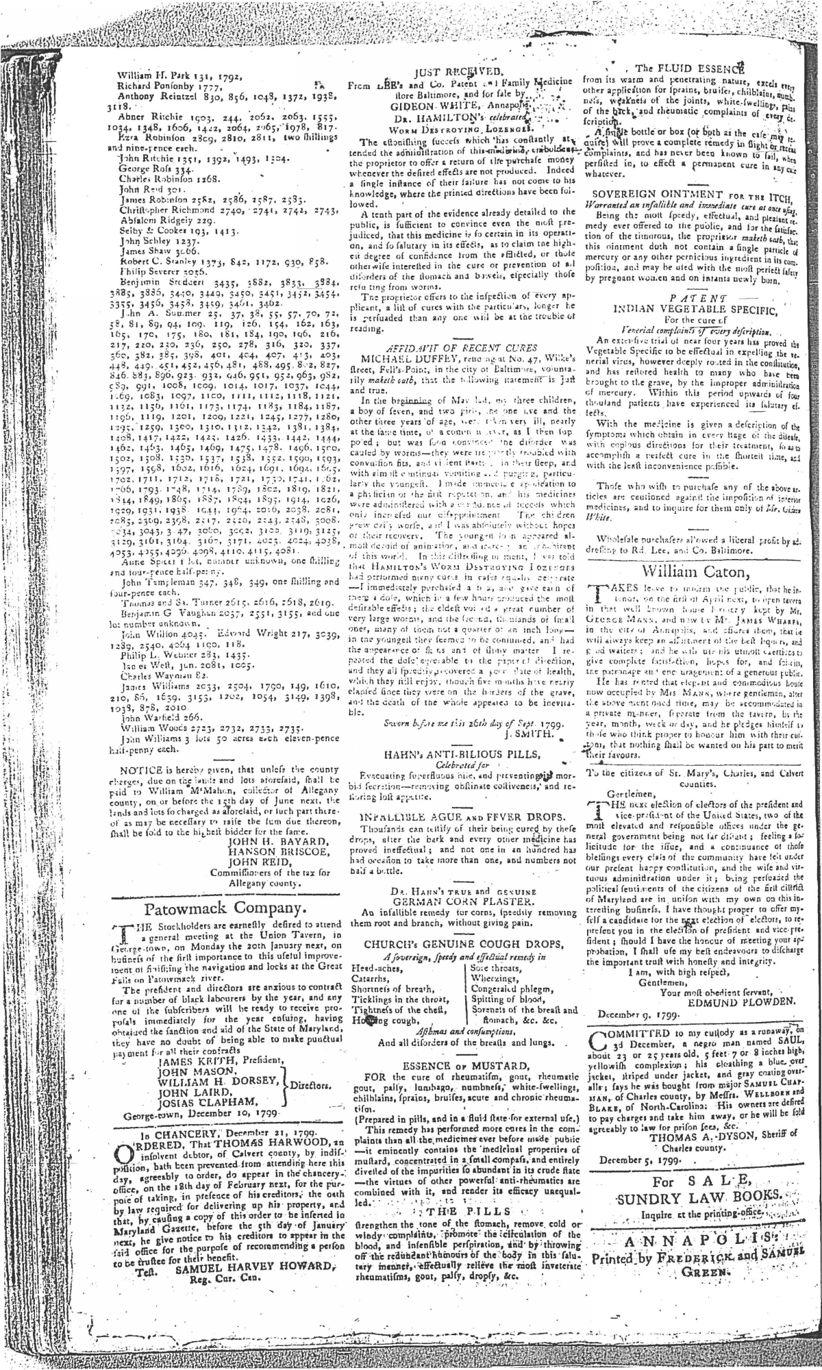 Maryland Gazette Collection MSA SC 2731 January 1, 1795 - December 29, 1803 M 1285 A Publication of the Archives of Maryland Online Image No: 1099 Enlarge and print image (2M) |