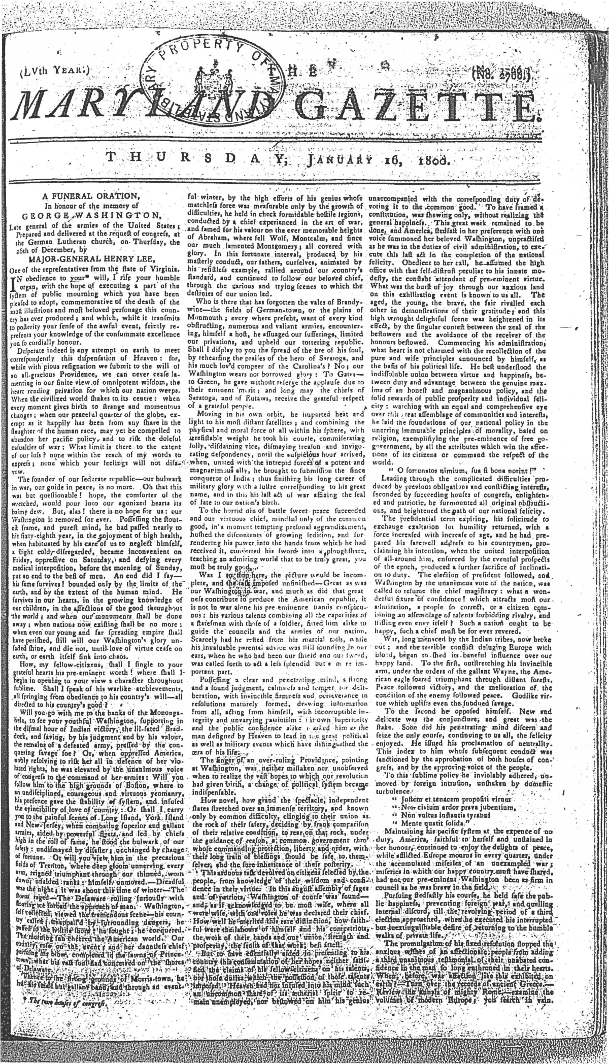 Maryland Gazette Collection MSA SC 2731 January 1, 1795 - December 29, 1803 M 1285 A Publication of the Archives of Maryland Online Image No: 1100 Enlarge and print image (3M) |