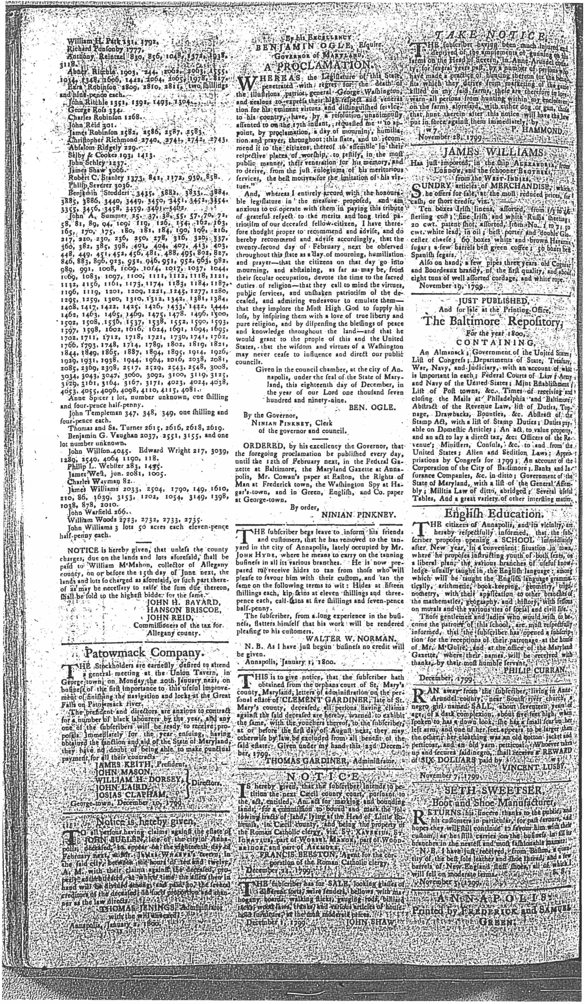 Maryland Gazette Collection MSA SC 2731 January 1, 1795 - December 29, 1803 M 1285 A Publication of the Archives of Maryland Online Image No: 1107 Enlarge and print image (4M) |