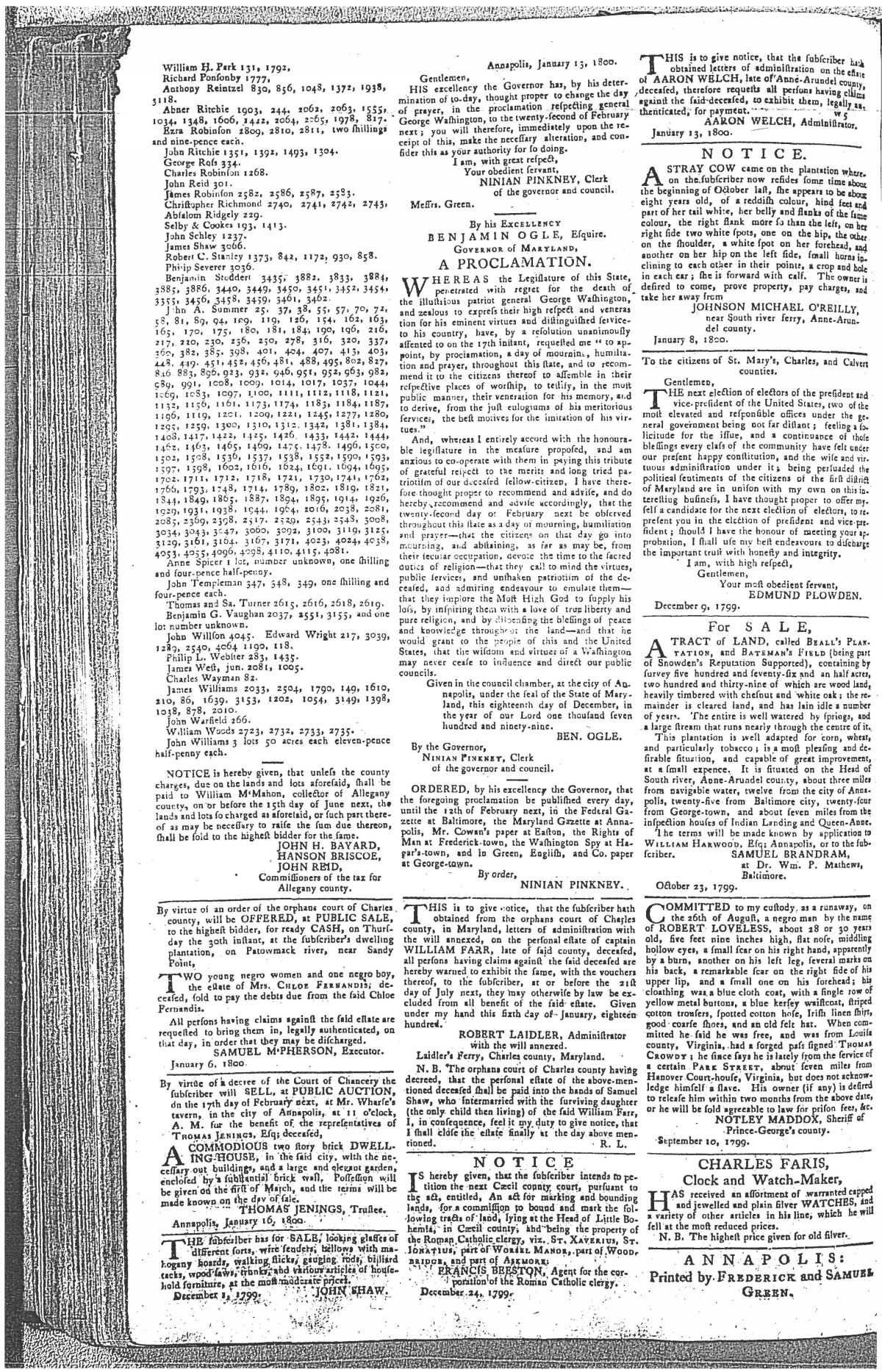 Maryland Gazette Collection MSA SC 2731 January 1, 1795 - December 29, 1803 M 1285 A Publication of the Archives of Maryland Online Image No: 1111 Enlarge and print image (3M) |