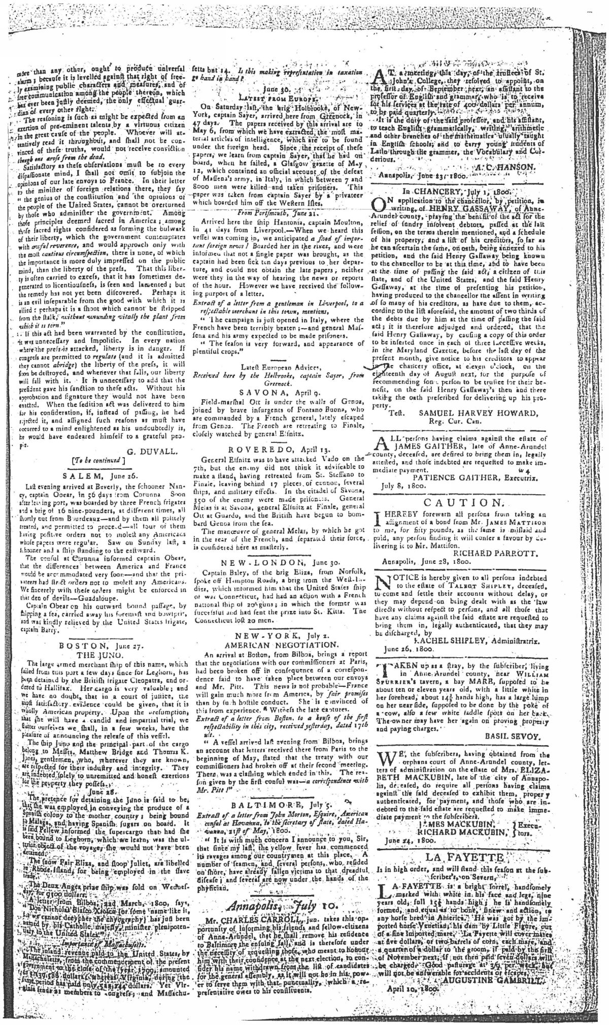 Maryland Gazette Collection MSA SC 2731 January 1, 1795 - December 29, 1803 M 1285 A Publication of the Archives of Maryland Online Image No: 1212 Enlarge and print image (3M) |