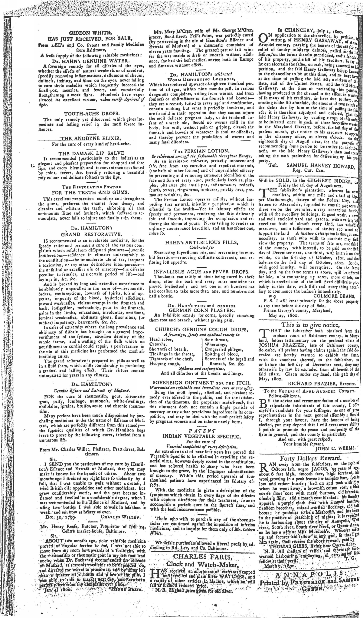 Maryland Gazette Collection MSA SC 2731 January 1, 1795 - December 29, 1803 M 1285 A Publication of the Archives of Maryland Online Image No: 1217 Enlarge and print image (2M) |