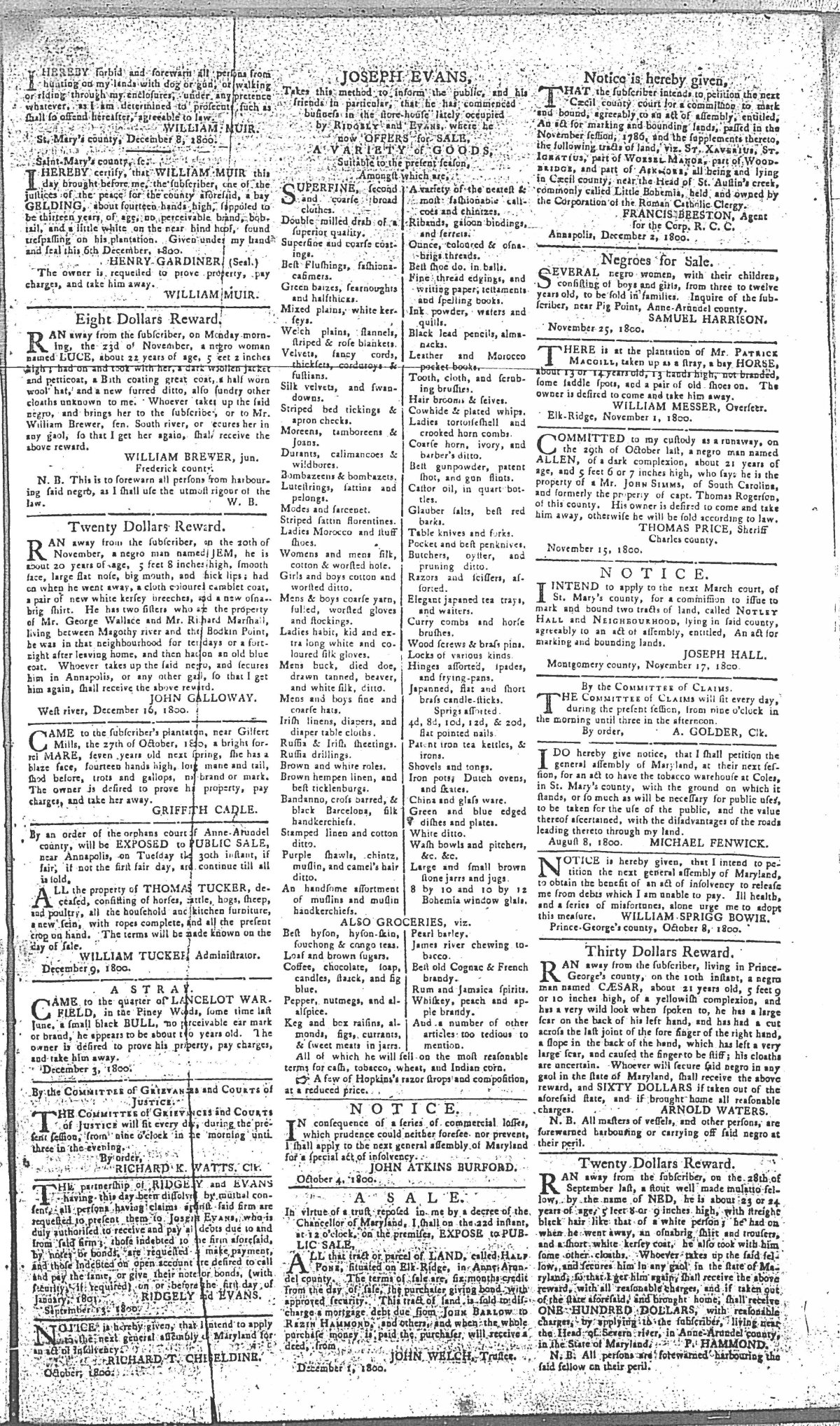 Maryland Gazette Collection MSA SC 2731 January 1, 1795 - December 29, 1803 M 1285 A Publication of the Archives of Maryland Online Image No: 1306 Enlarge and print image (2M) |