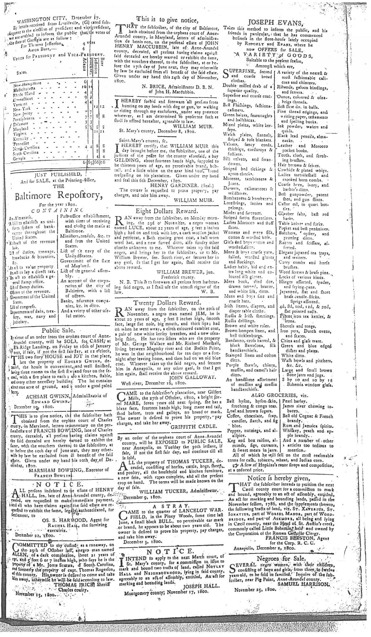 Maryland Gazette Collection MSA SC 2731 January 1, 1795 - December 29, 1803 M 1285 A Publication of the Archives of Maryland Online Image No: 1310 Enlarge and print image (2M) |