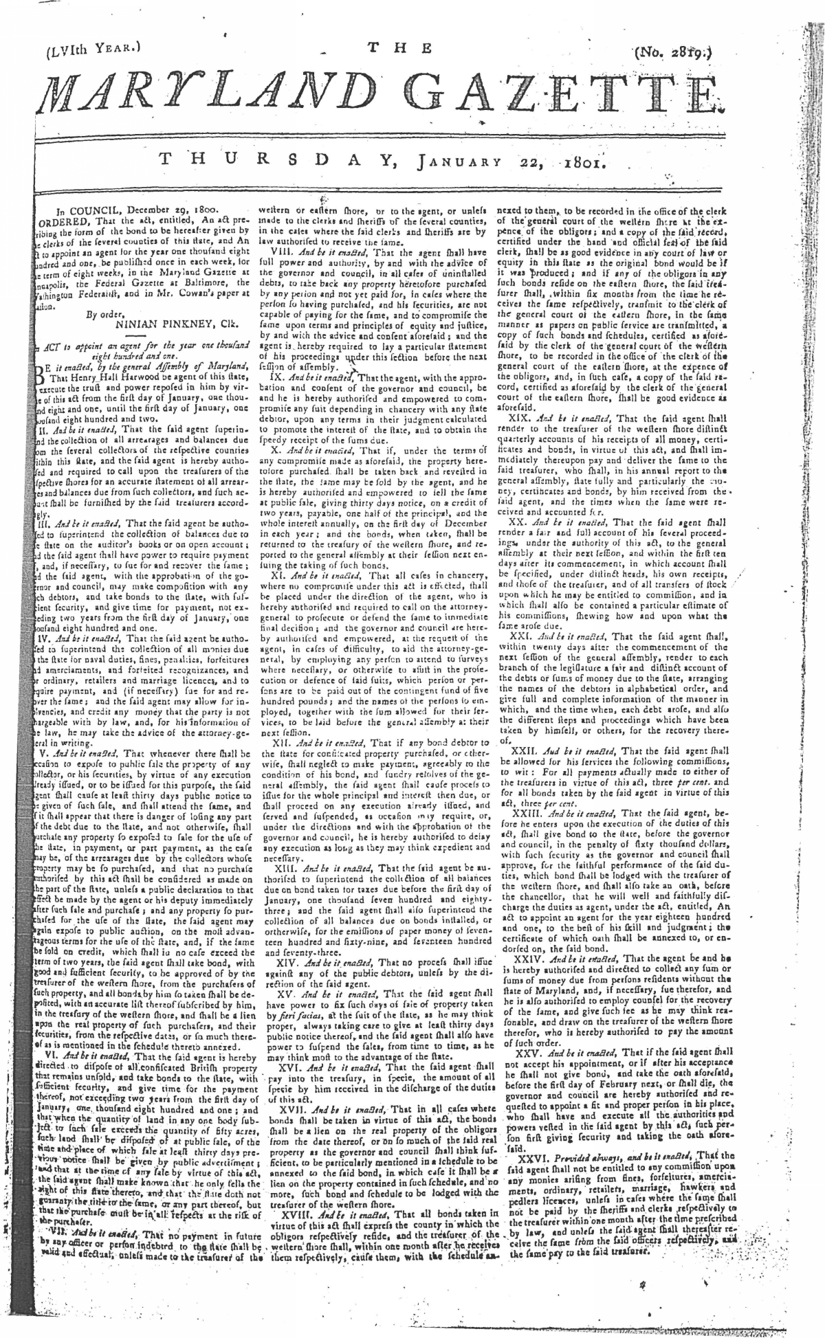 Maryland Gazette Collection MSA SC 2731 January 1, 1795 - December 29, 1803 M 1285 A Publication of the Archives of Maryland Online Image No: 1324 Enlarge and print image (2M) |