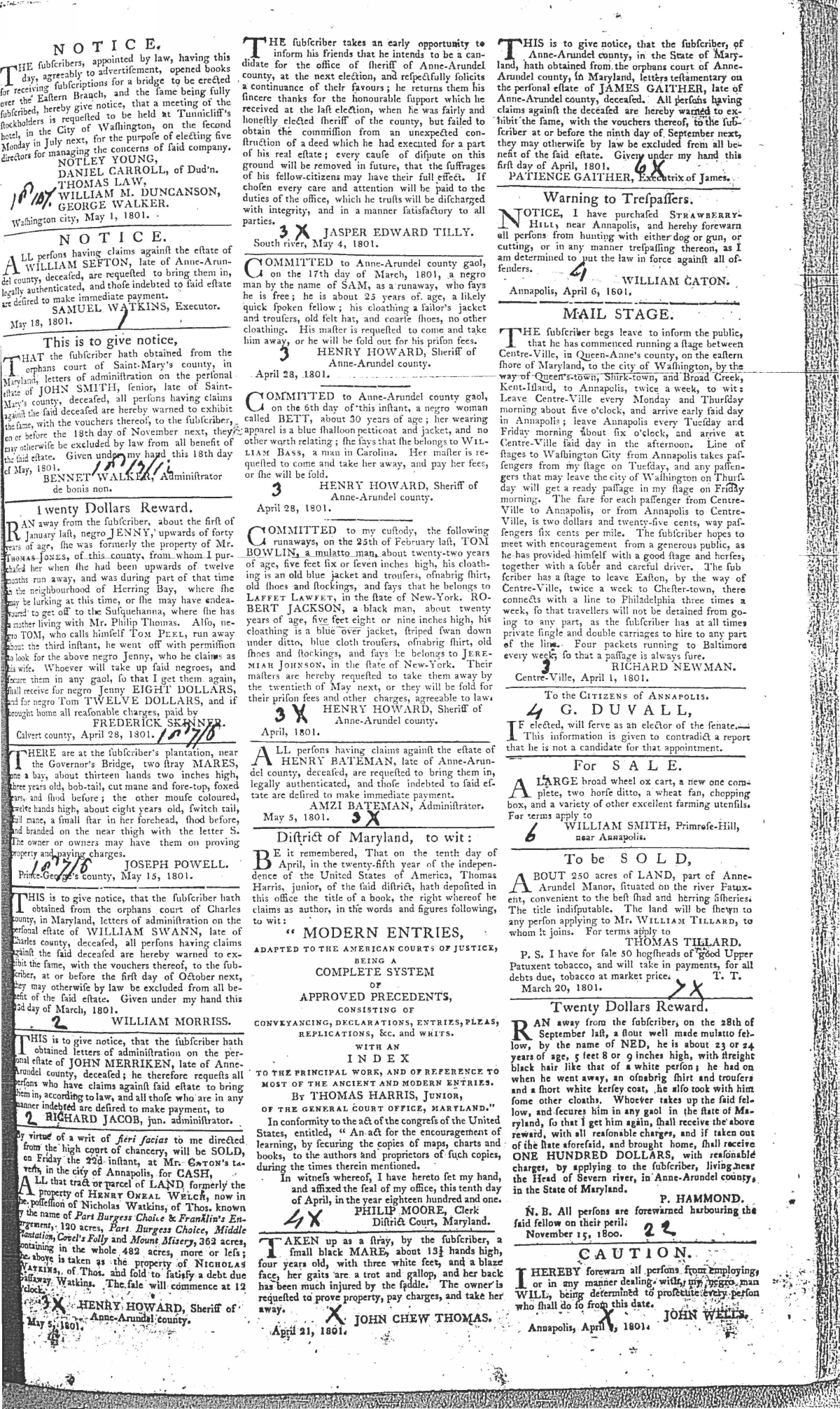 Maryland Gazette Collection MSA SC 2731 January 1, 1795 - December 29, 1803 M 1285 A Publication of the Archives of Maryland Online Image No: 1395 Enlarge and print image (2M) |