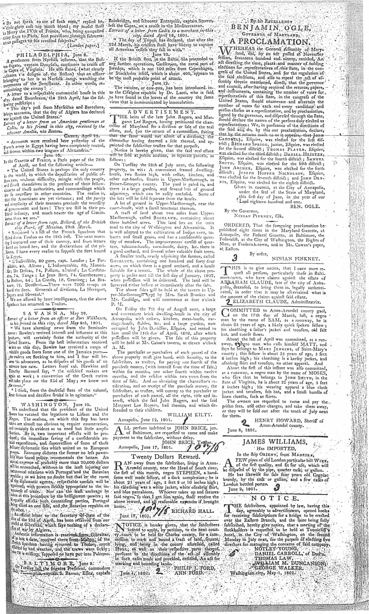 Maryland Gazette Collection MSA SC 2731 January 1, 1795 - December 29, 1803 M 1285 A Publication of the Archives of Maryland Online Image No: 1411 Enlarge and print image (3M) |