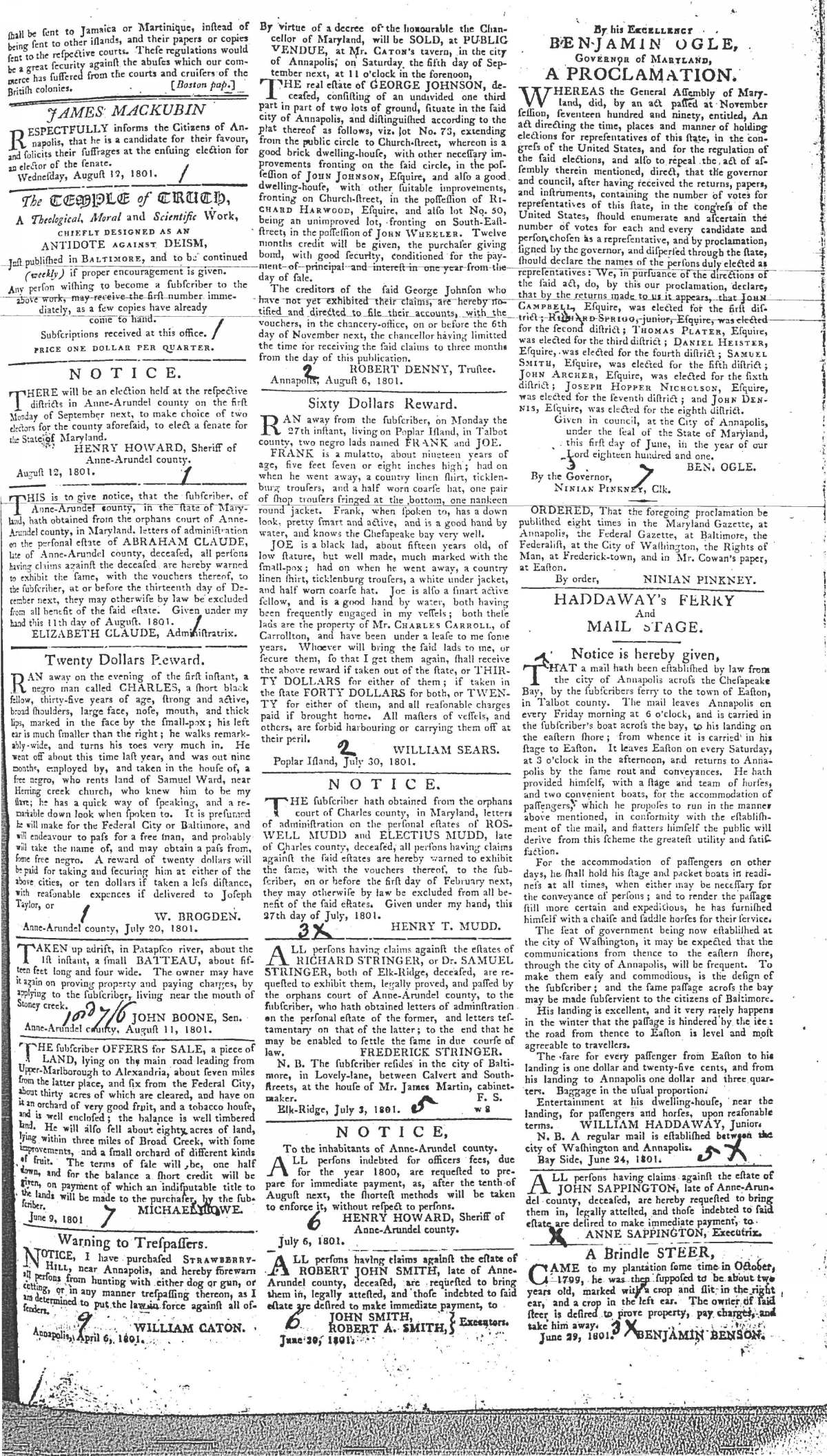Maryland Gazette Collection MSA SC 2731 January 1, 1795 - December 29, 1803 M 1285 A Publication of the Archives of Maryland Online Image No: 1445 Enlarge and print image (2M) |