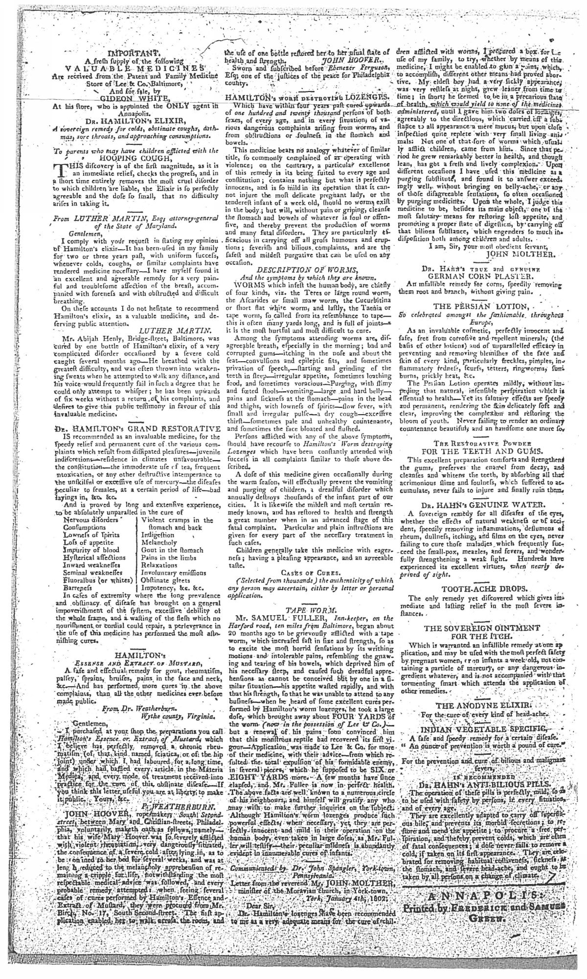 Maryland Gazette Collection MSA SC 2731 January 1, 1795 - December 29, 1803 M 1285 A Publication of the Archives of Maryland Online Image No: 1600 Enlarge and print image (3M) |