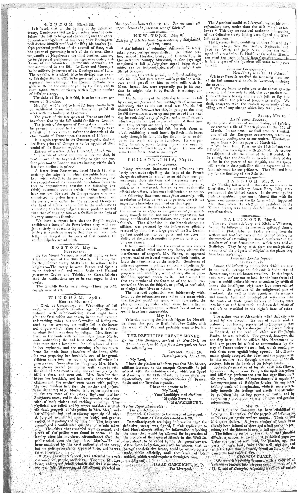 Maryland Gazette Collection MSA SC 2731 January 1, 1795 - December 29, 1803 M 1285 A Publication of the Archives of Maryland Online Image No: 1602 Enlarge and print image (2M) |