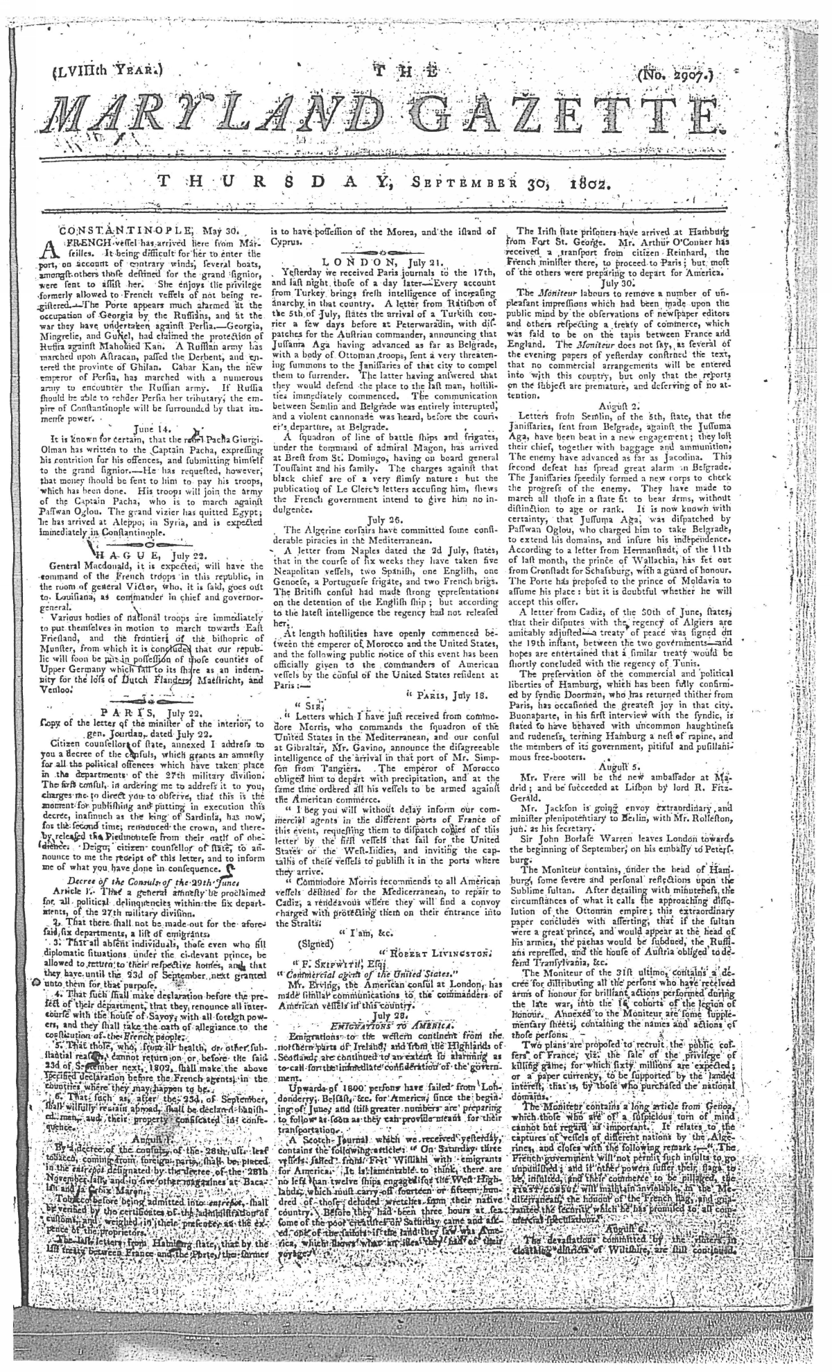 Maryland Gazette Collection MSA SC 2731 January 1, 1795 - December 29, 1803 M 1285 A Publication of the Archives of Maryland Online Image No: 1681 Enlarge and print image (3M) |