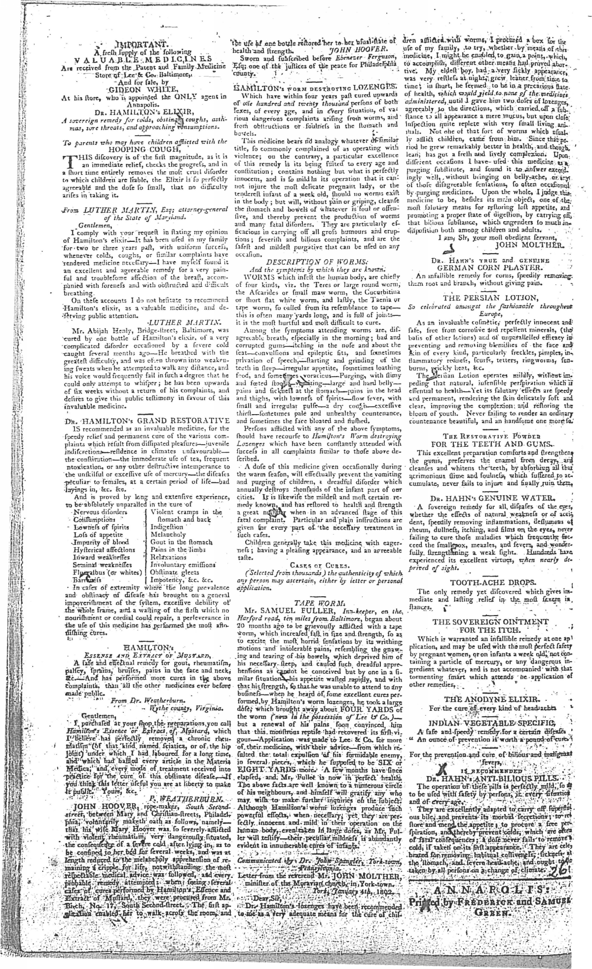 Maryland Gazette Collection MSA SC 2731 January 1, 1795 - December 29, 1803 M 1285 A Publication of the Archives of Maryland Online Image No: 1684 Enlarge and print image (3M) |