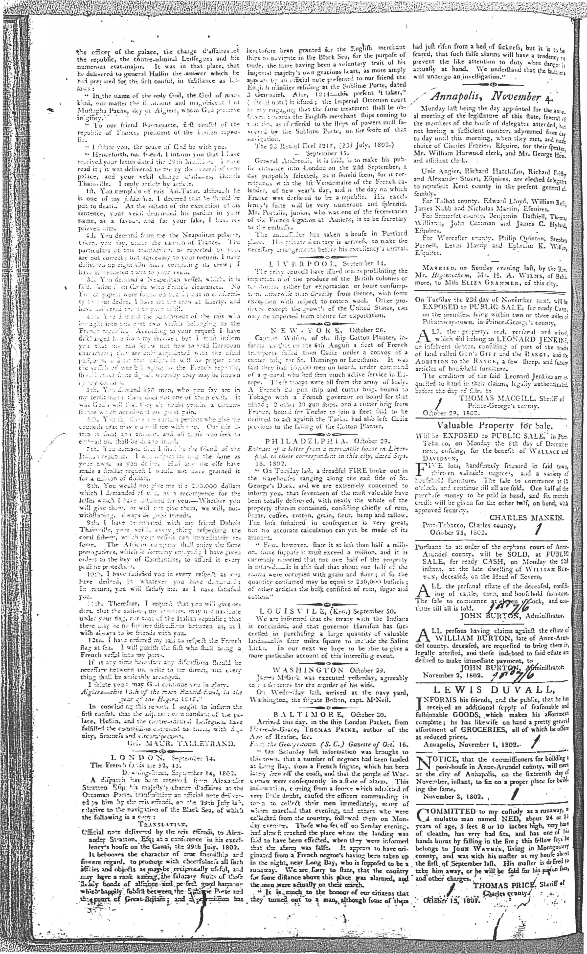 Maryland Gazette Collection MSA SC 2731 January 1, 1795 - December 29, 1803 M 1285 A Publication of the Archives of Maryland Online Image No: 1702 Enlarge and print image (2M) |