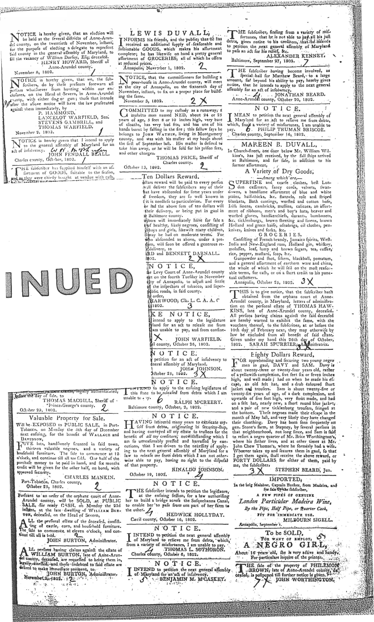 Maryland Gazette Collection MSA SC 2731 January 1, 1795 - December 29, 1803 M 1285 A Publication of the Archives of Maryland Online Image No: 1711 Enlarge and print image (2M) |