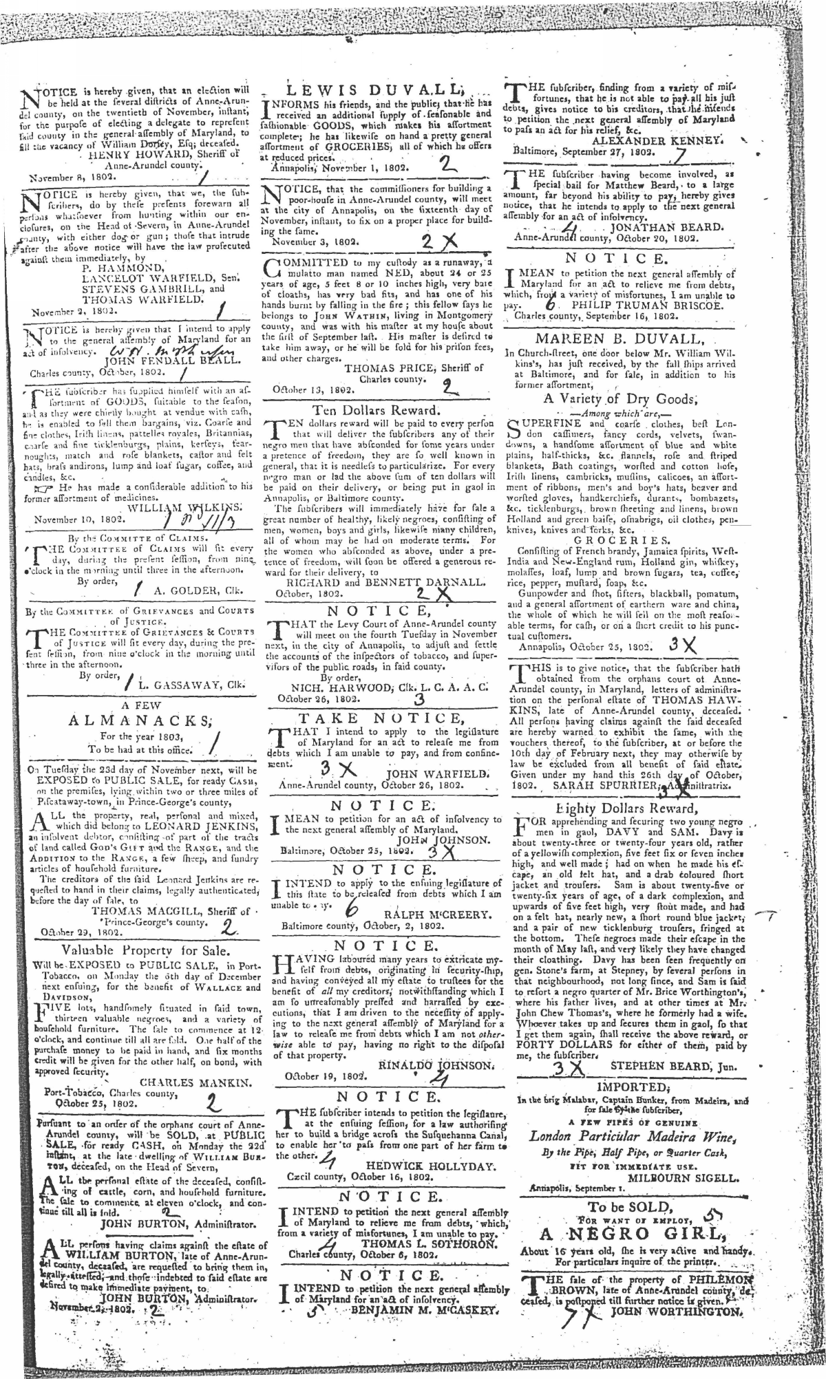 Maryland Gazette Collection MSA SC 2731 January 1, 1795 - December 29, 1803 M 1285 A Publication of the Archives of Maryland Online Image No: 1713 Enlarge and print image (2M) |