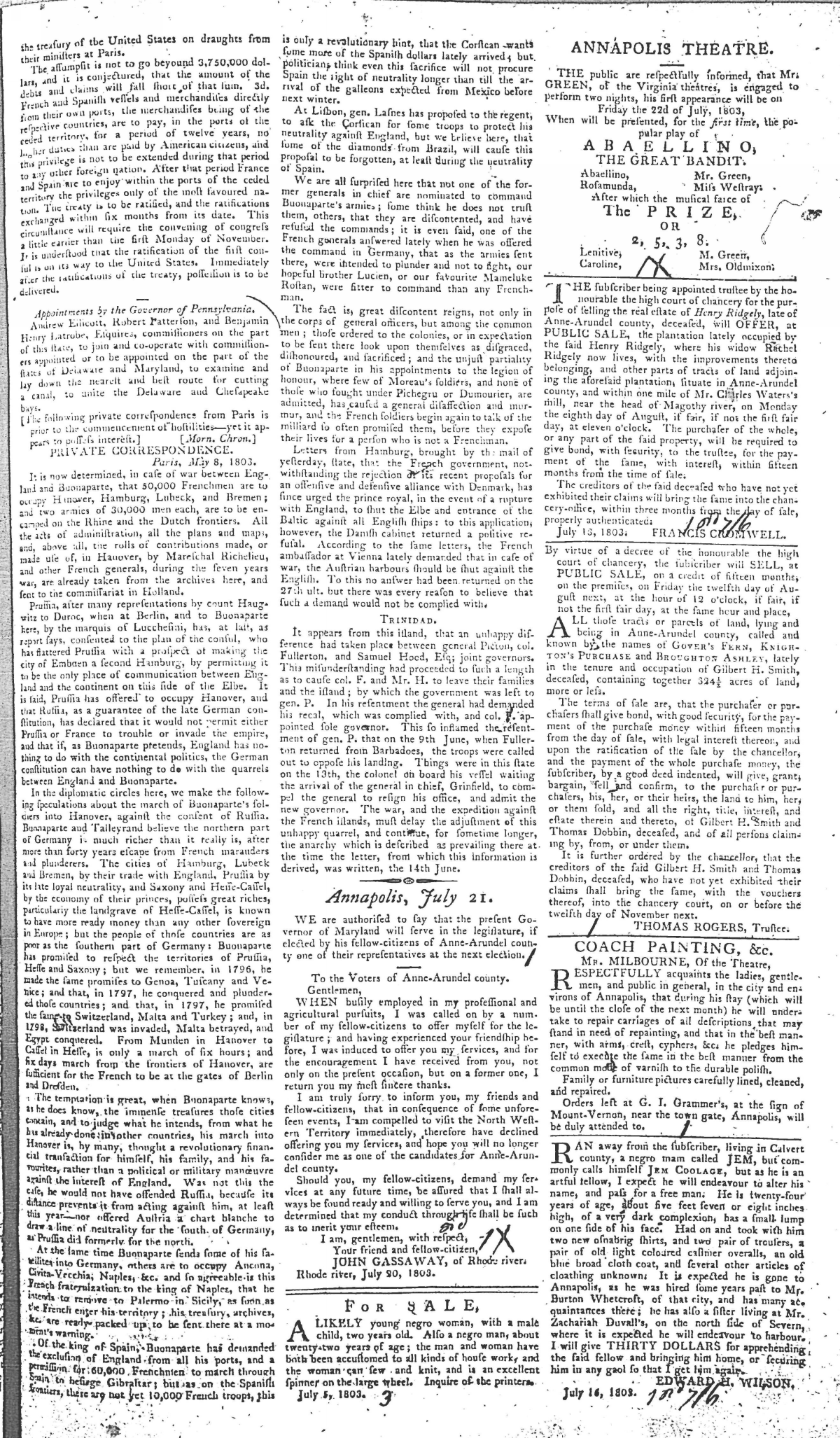Maryland Gazette Collection MSA SC 2731 January 1, 1795 - December 29, 1803 M 1285 A Publication of the Archives of Maryland Online Image No: 1860 Enlarge and print image (2M) |