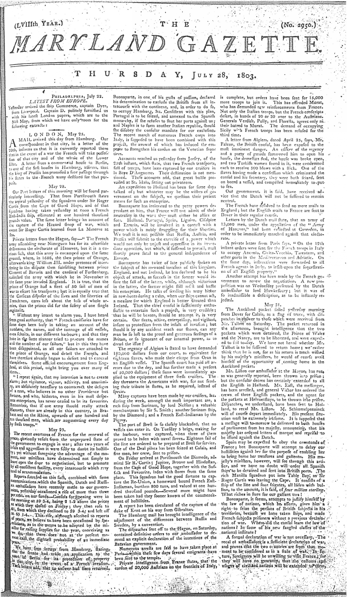 Maryland Gazette Collection MSA SC 2731 January 1, 1795 - December 29, 1803 M 1285 A Publication of the Archives of Maryland Online Image No: 1862 Enlarge and print image (2M) |