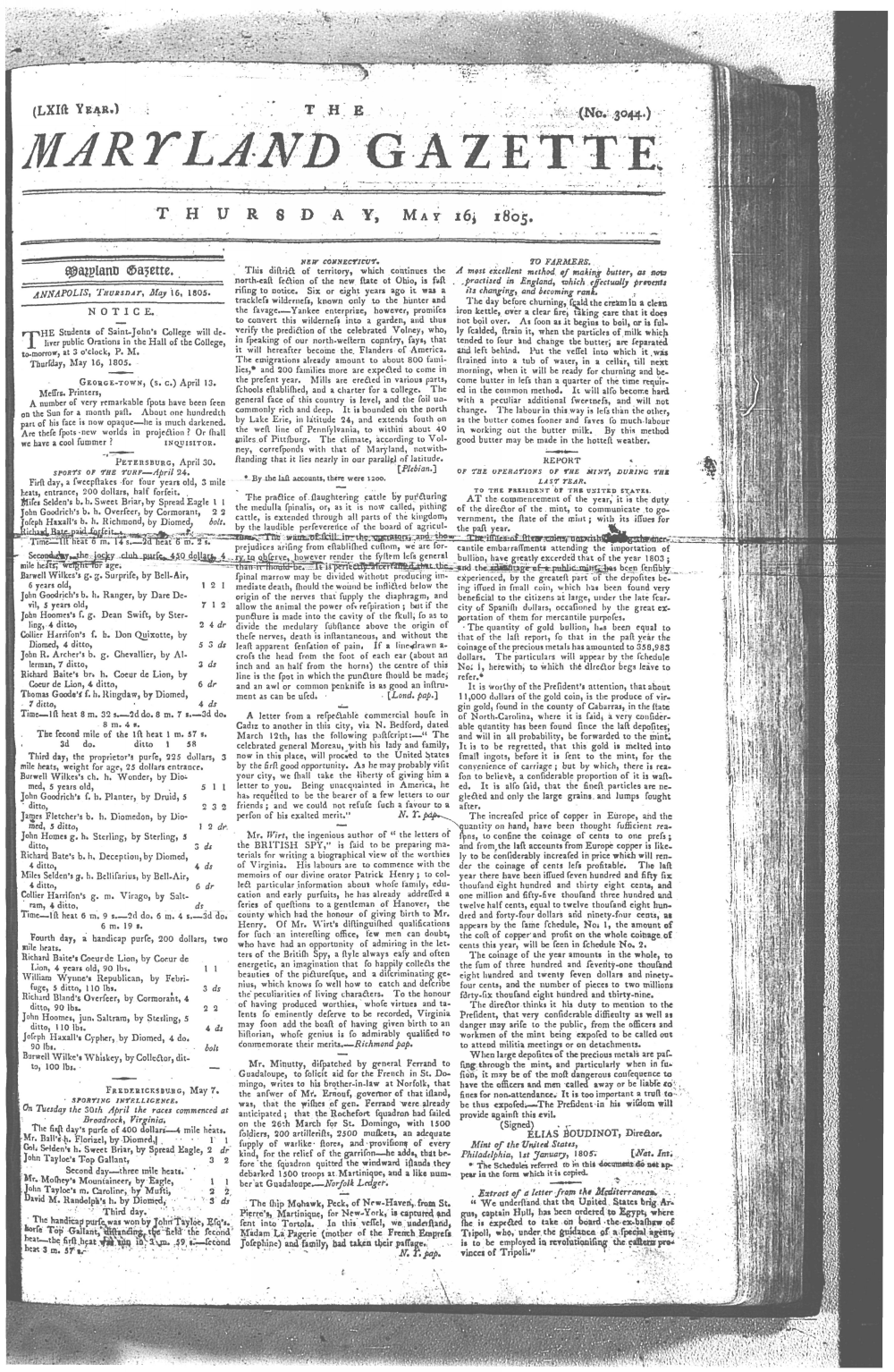 Maryland Gazette Collection MSA SC 2731 January 5, 1804 - December 27, 1810 M 1286 A Publication of the Archives of Maryland Online Image No: 297 Enlarge and print image (3M) |