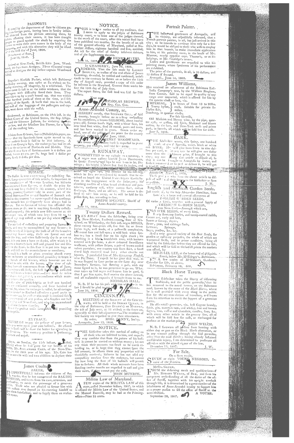 Maryland Gazette Collection MSA SC 2731 January 5, 1804 - December 27, 1810 M 1286 A Publication of the Archives of Maryland Online Image No: 1016 Enlarge and print image (3M) |