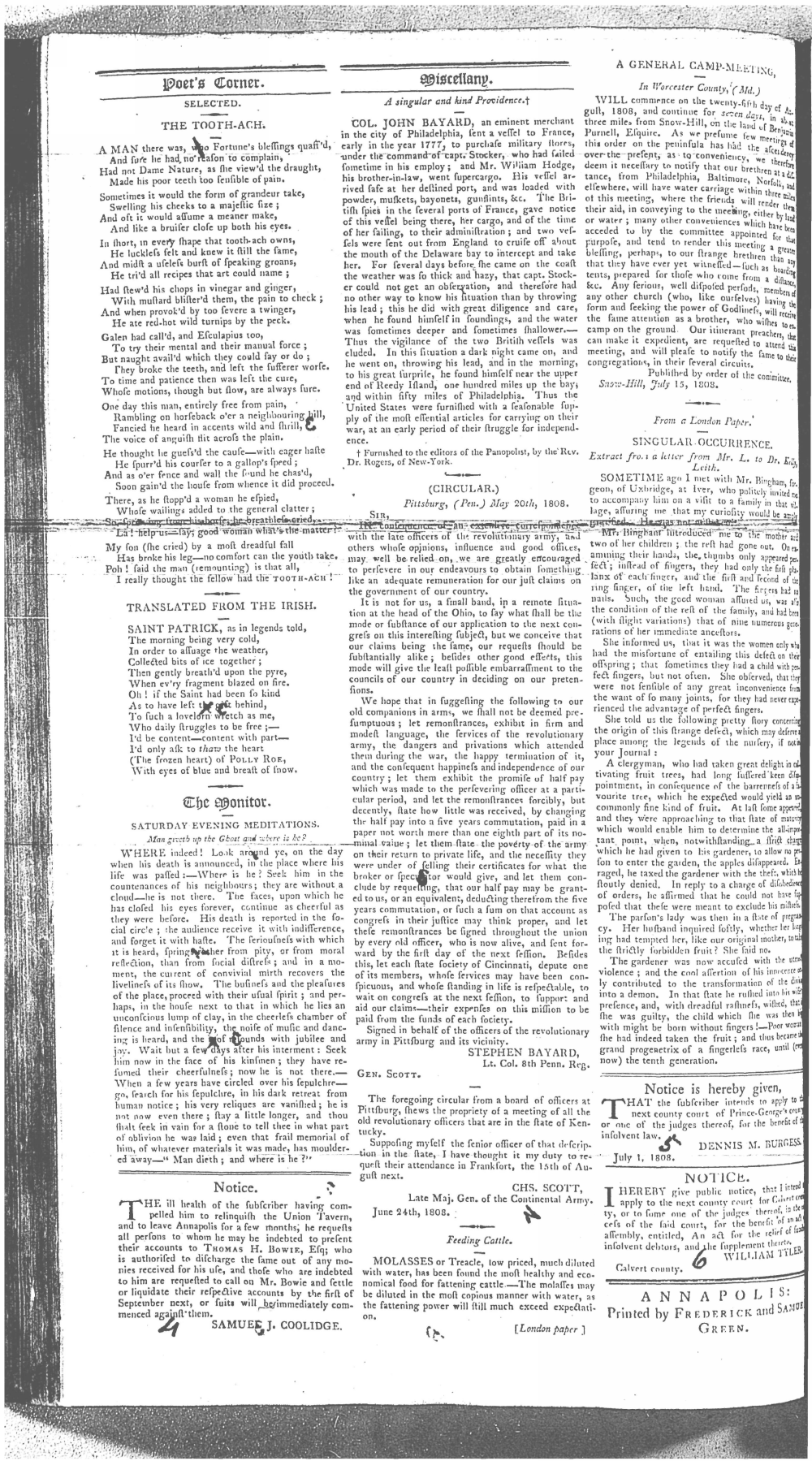 Maryland Gazette Collection MSA SC 2731 January 5, 1804 - December 27, 1810 M 1286 A Publication of the Archives of Maryland Online Image No: 1047 Enlarge and print image (2M) |