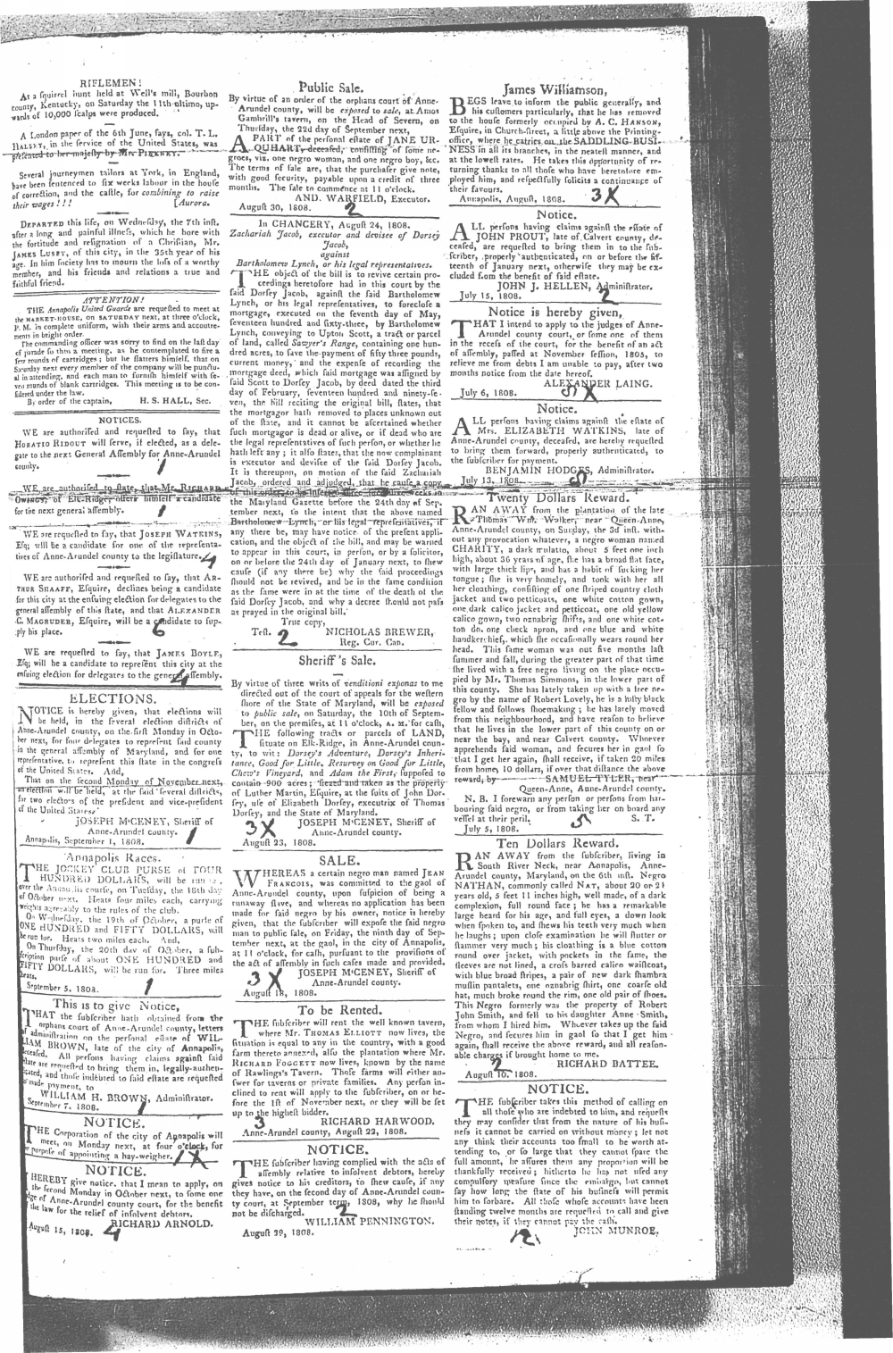Maryland Gazette Collection MSA SC 2731 January 5, 1804 - December 27, 1810 M 1286 A Publication of the Archives of Maryland Online Image No: 1066 Enlarge and print image (3M) |