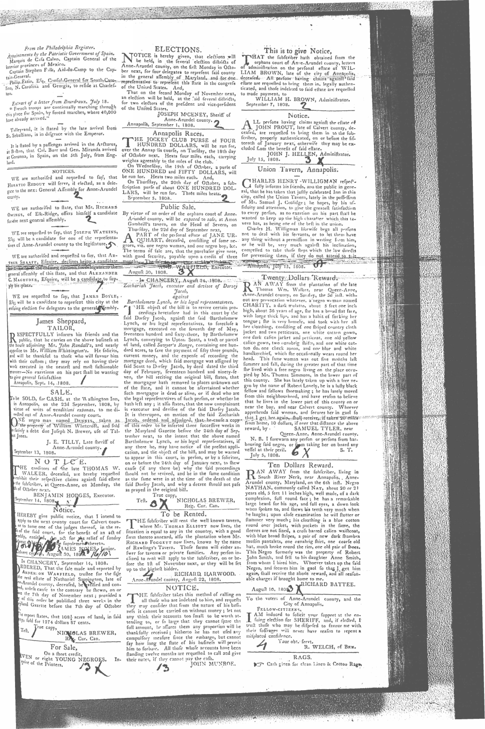 Maryland Gazette Collection MSA SC 2731 January 5, 1804 - December 27, 1810 M 1286 A Publication of the Archives of Maryland Online Image No: 1070 Enlarge and print image (3M) |