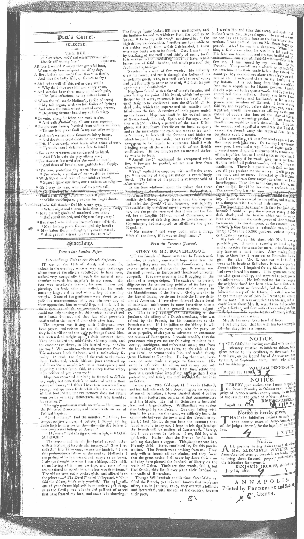 Maryland Gazette Collection MSA SC 2731 January 5, 1804 - December 27, 1810 M 1286 A Publication of the Archives of Maryland Online Image No: 1071 Enlarge and print image (2M) |