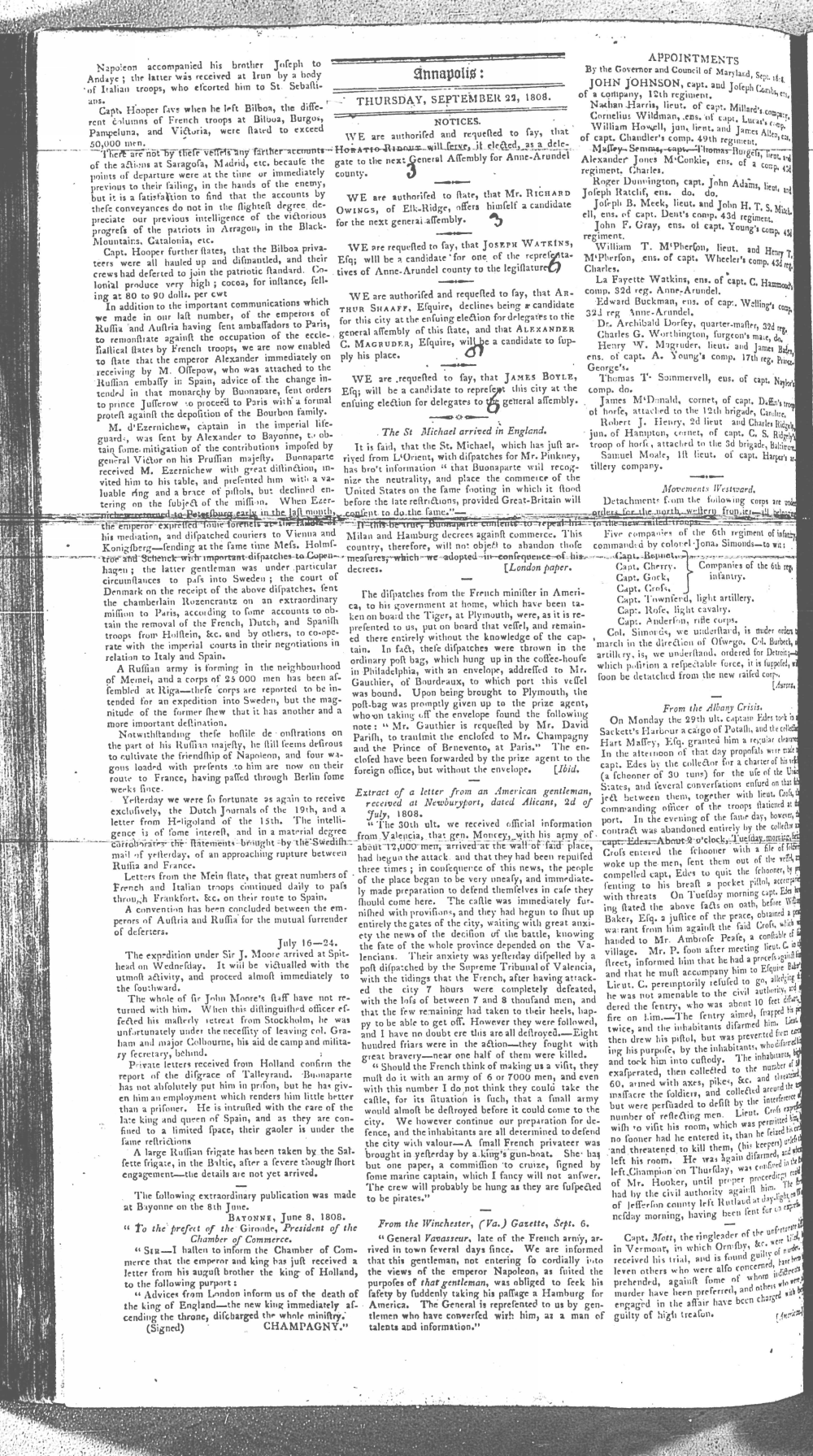 Maryland Gazette Collection MSA SC 2731 January 5, 1804 - December 27, 1810 M 1286 A Publication of the Archives of Maryland Online Image No: 1073 Enlarge and print image (2M) |