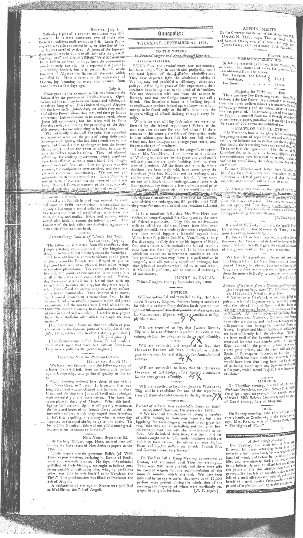 Maryland Gazette Collection MSA SC 2731 January 5, 1804 - December 27, 1810 M 1286 A Publication of the Archives of Maryland Online Image No: 1077 Enlarge and print image (2M) |