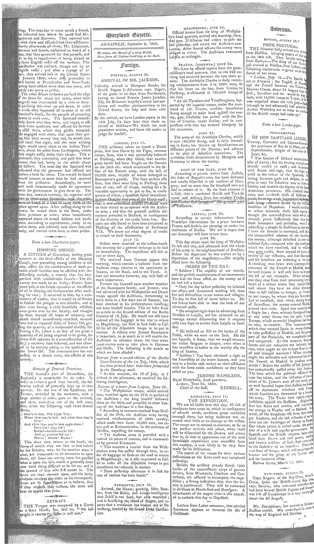 Maryland Gazette Collection MSA SC 2731 January 5, 1804 - December 27, 1810 M 1286 A Publication of the Archives of Maryland Online Image No: 1292 Enlarge and print image (3M) |