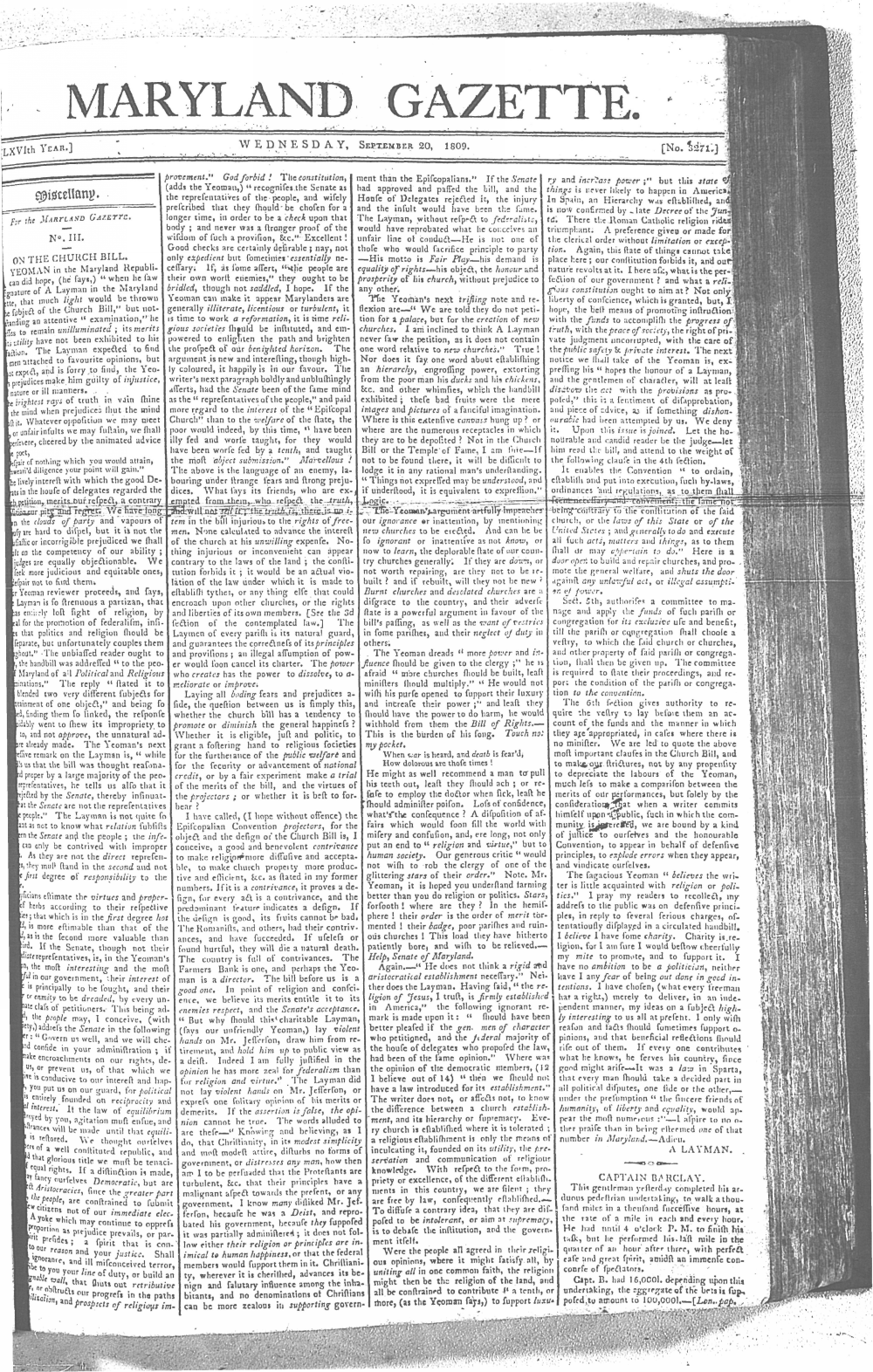 Maryland Gazette Collection MSA SC 2731 January 5, 1804 - December 27, 1810 M 1286 A Publication of the Archives of Maryland Online Image No: 1301 Enlarge and print image (3M) |