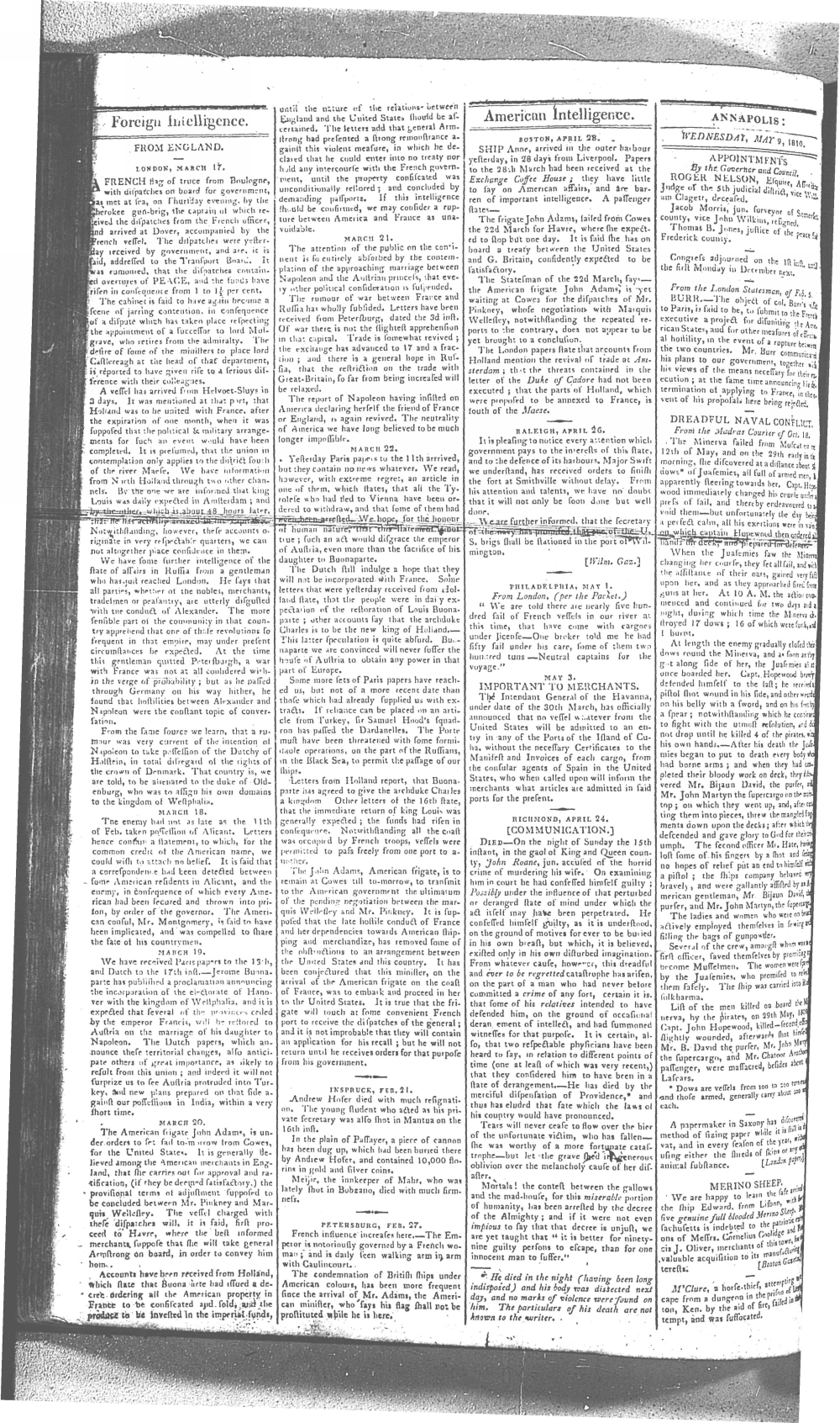 Maryland Gazette Collection MSA SC 2731 January 5, 1804 - December 27, 1810 M 1286 A Publication of the Archives of Maryland Online Image No: 1442 Enlarge and print image (3M) |