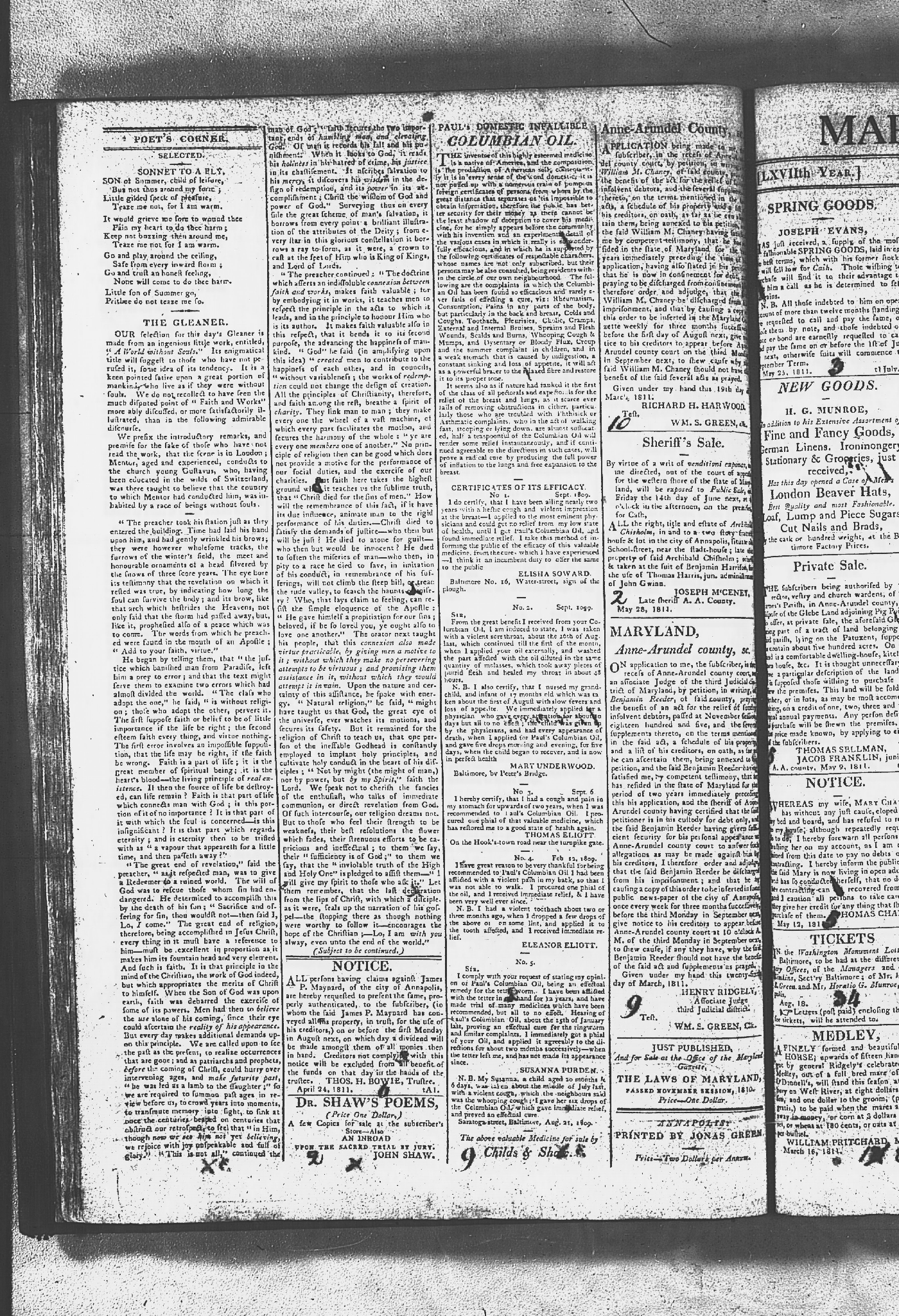 Maryland Gazette and Maryland Gazette and Political Intelligencer Collections MSA SC 2731 and SC 3403 January 2, 1811 - December 19, 1816 M 1287 A Publication of the Archives of Maryland Online Image No: 100