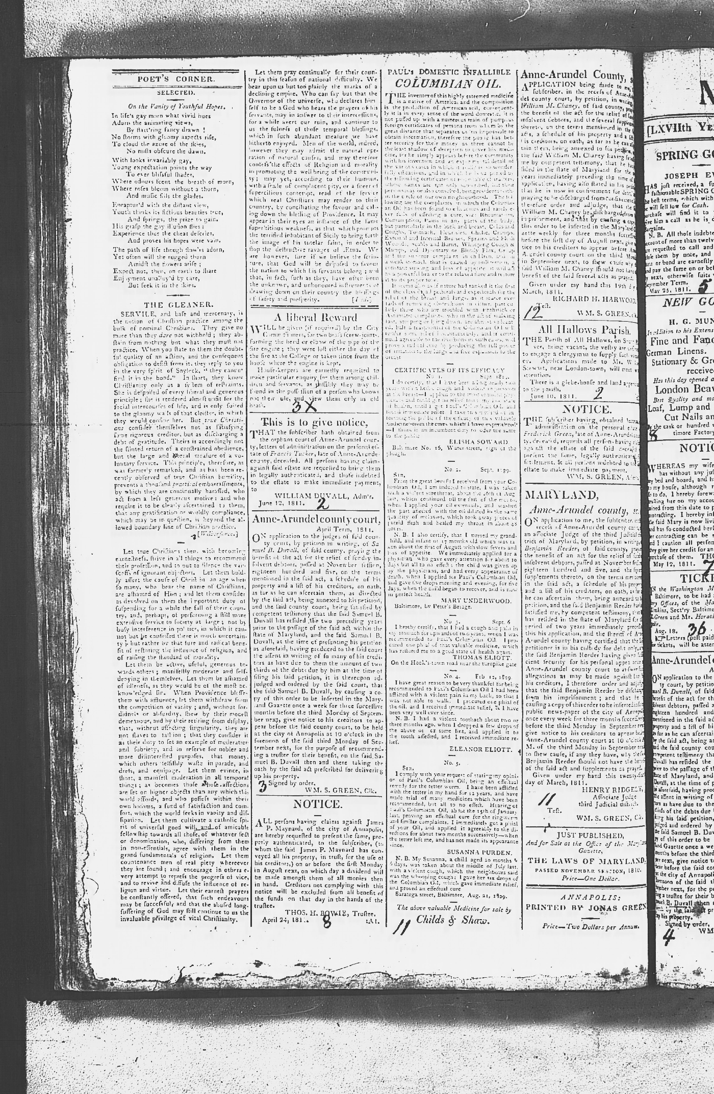 Maryland Gazette and Maryland Gazette and Political Intelligencer Collections MSA SC 2731 and SC 3403 January 2, 1811 - December 19, 1816 M 1287 A Publication of the Archives of Maryland Online Image No: 112