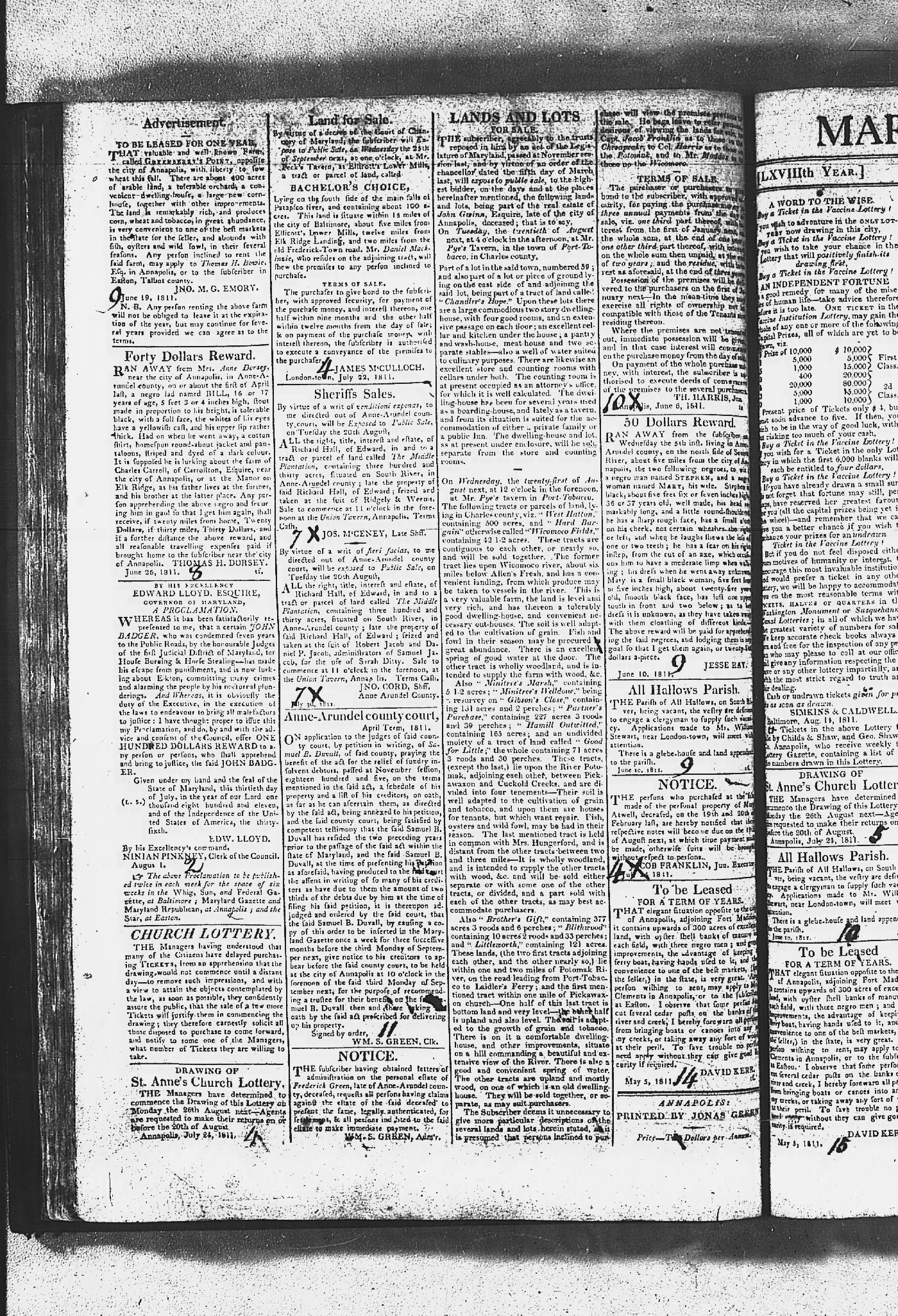 Maryland Gazette and Maryland Gazette and Political Intelligencer Collections MSA SC 2731 and SC 3403 January 2, 1811 - December 19, 1816 M 1287 A Publication of the Archives of Maryland Online Image No: 140