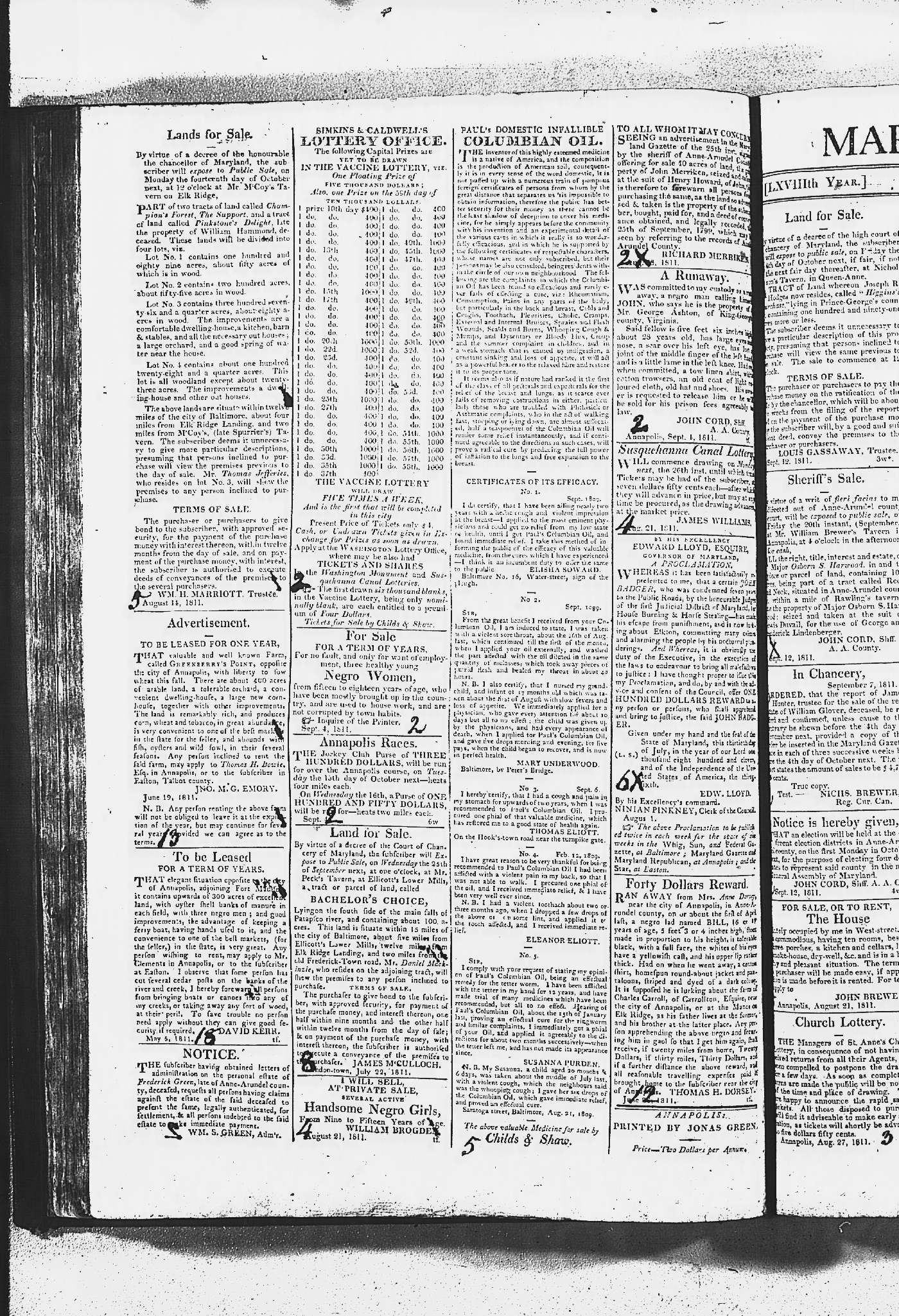 Maryland Gazette and Maryland Gazette and Political Intelligencer Collections MSA SC 2731 and SC 3403 January 2, 1811 - December 19, 1816 M 1287 A Publication of the Archives of Maryland Online Image No: 156