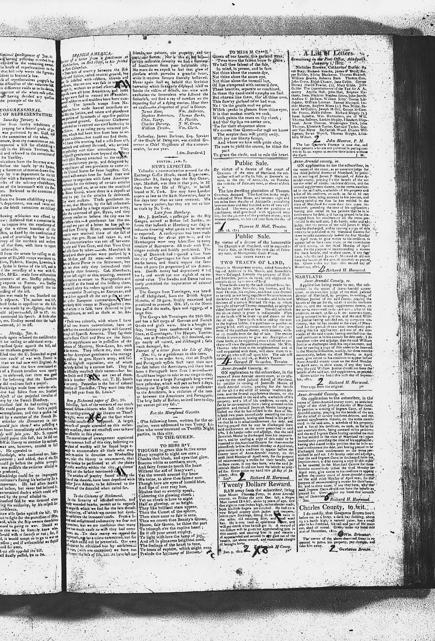 Maryland Gazette and Maryland Gazette and Political Intelligencer Collections MSA SC 2731 and SC 3403 January 2, 1811 - December 19, 1816 M 1287 A Publication of the Archives of Maryland Online Image No: 239