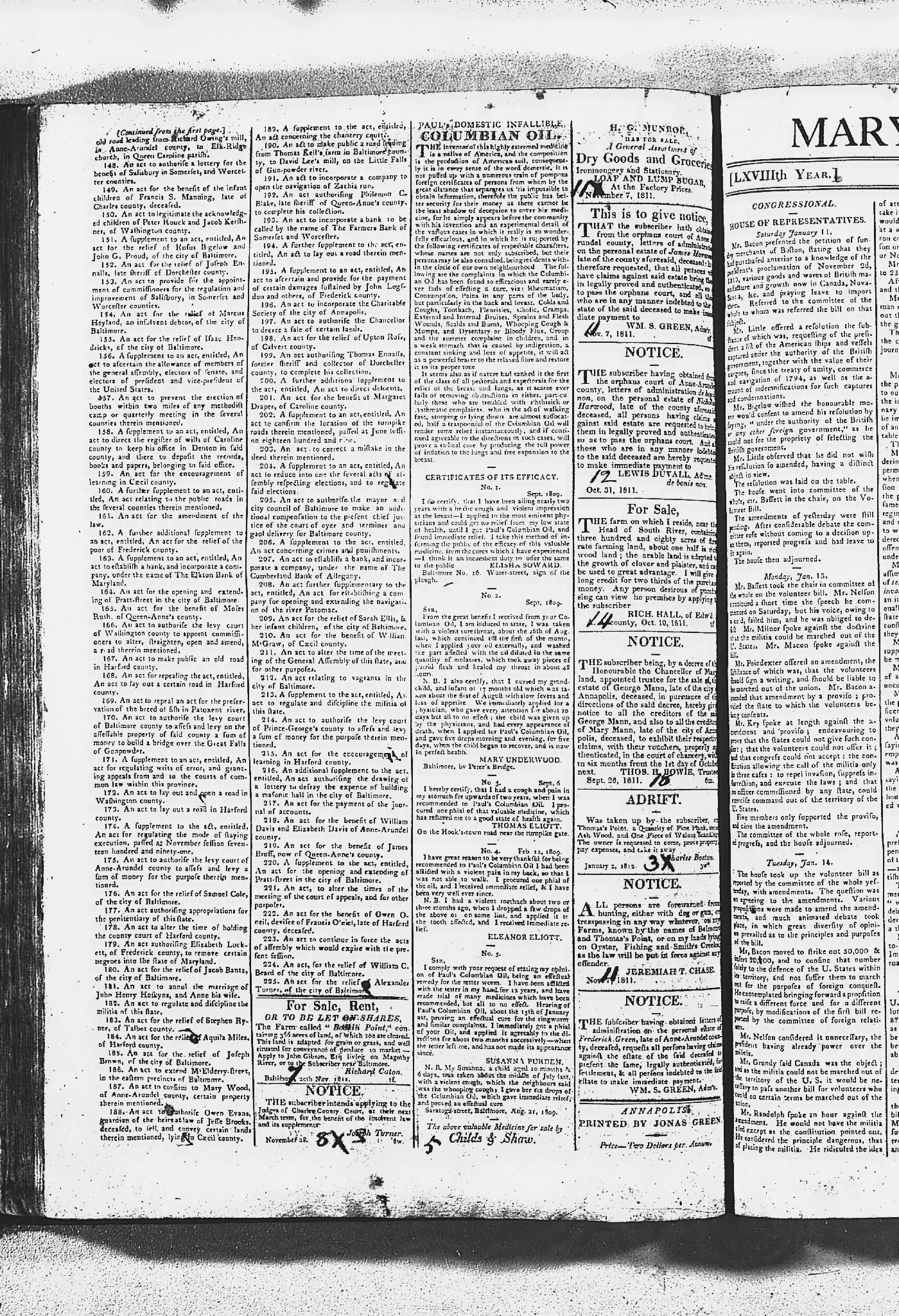Maryland Gazette and Maryland Gazette and Political Intelligencer Collections MSA SC 2731 and SC 3403 January 2, 1811 - December 19, 1816 M 1287 A Publication of the Archives of Maryland Online Image No: 240