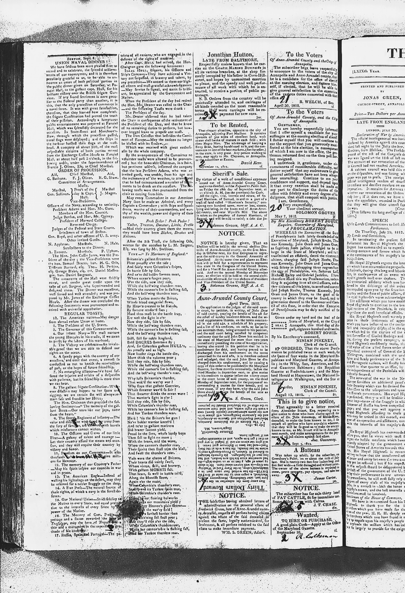 Maryland Gazette and Maryland Gazette and Political Intelligencer Collections MSA SC 2731 and SC 3403 January 2, 1811 - December 19, 1816 M 1287 A Publication of the Archives of Maryland Online Image No: 398